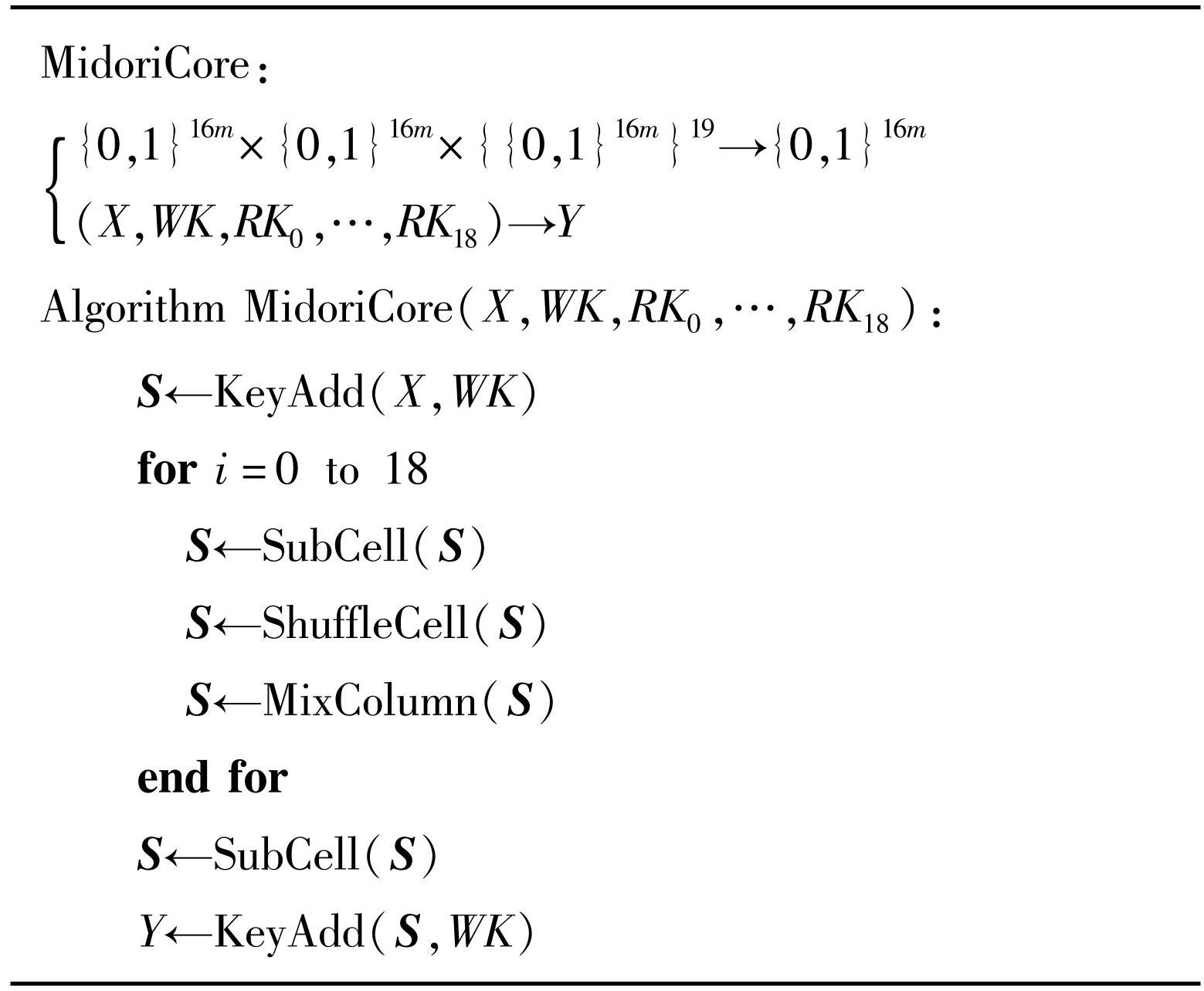 Midori128算法加密过程的伪代码如算法1所示。