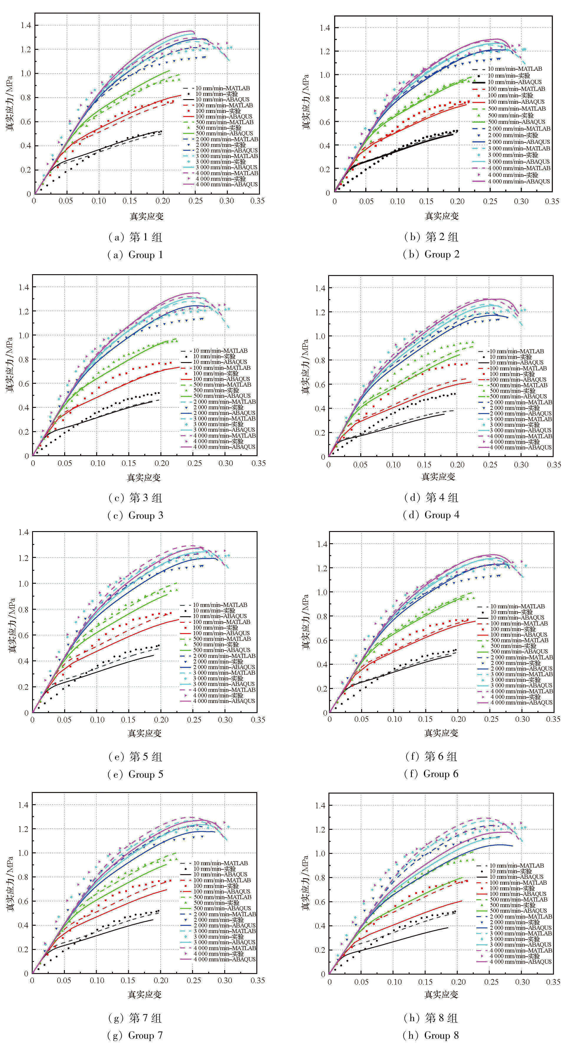 1)第1~4组的设置是为了探究减少低速率组别对本构模型精度的影响。