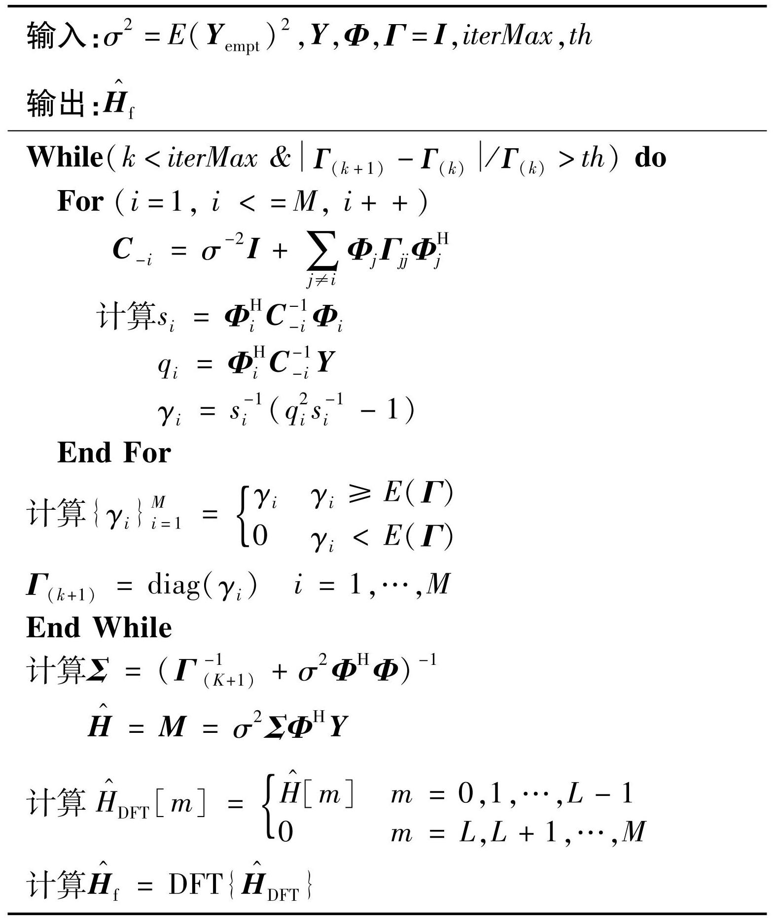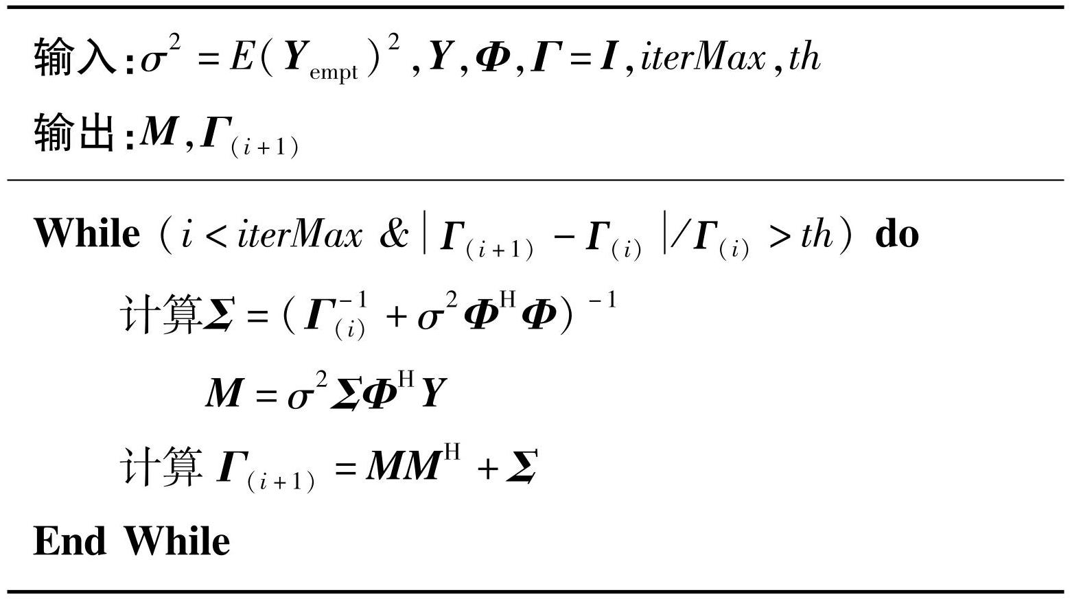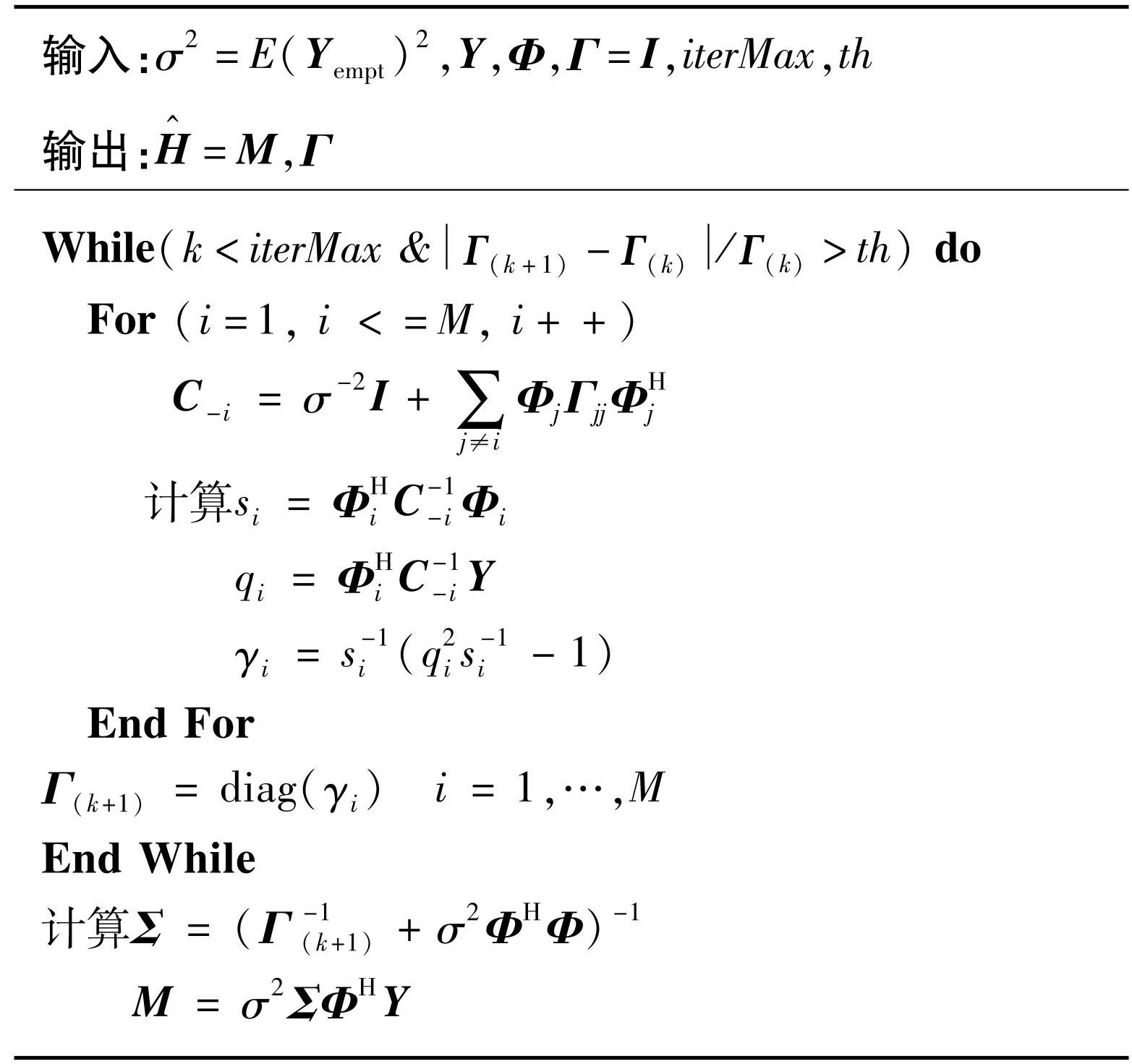 估计的信道。EM-SBL算法的流程如算法1所示。