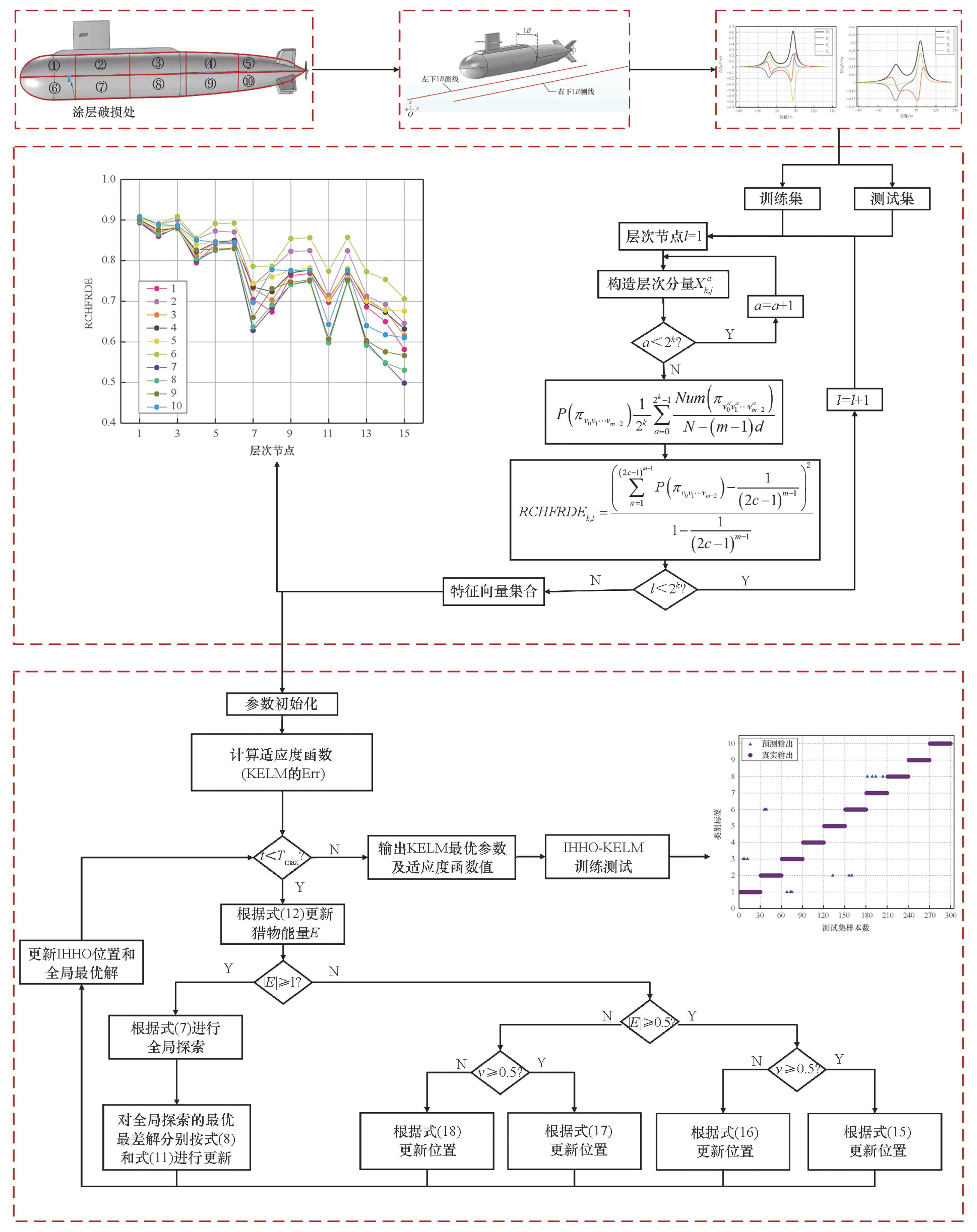 为了准确识别舰船涂层破损的区域,本文提出一种利用腐蚀电场信号的基于RCHFRDE和IHHO-KELM的舰船涂层破损检测方法,仿真实验验证的总体框架共分为3步,如图9所示。