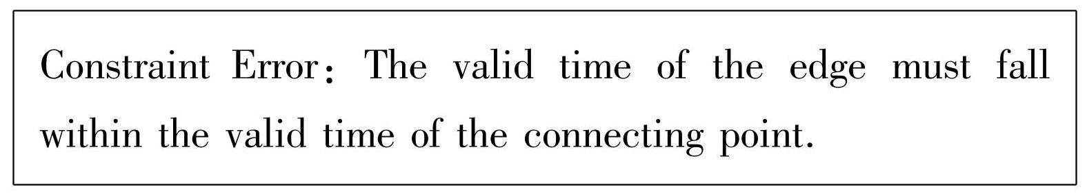 此外,在进行时态更新时,有可能会破坏时态约束,而翻译器无法检查所有非法时态更新语句。对于翻译器无法检测到的非法更新语句,本文借助自定义时态算法来进行检查,若更新语句违反了时态约束,则给出错误提示,确保前文提到的时态属性图的时间完整性约束。