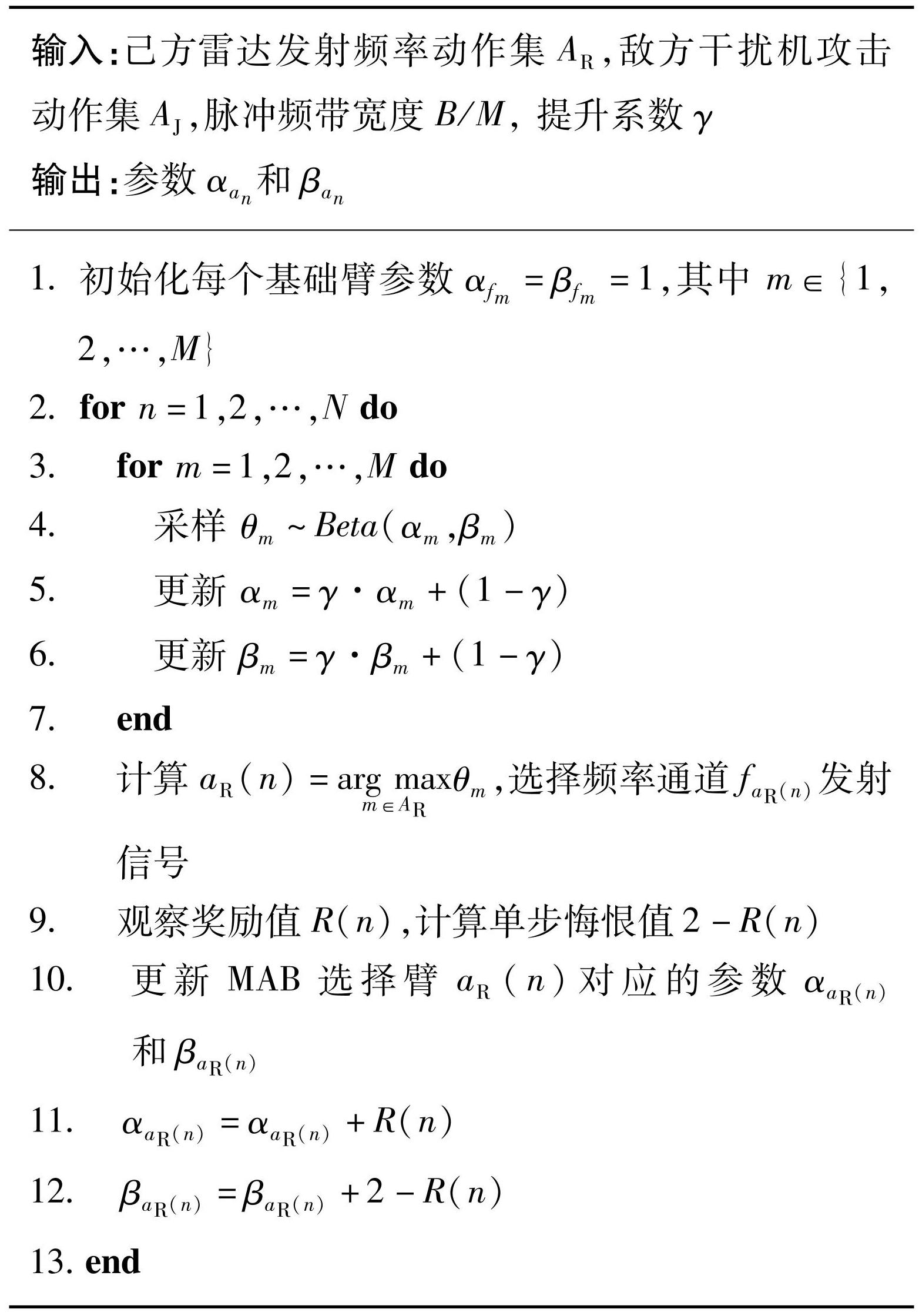 Alg.1 Research on online anti-jamming strategy for radar frequency agility based on Thompson sampling
