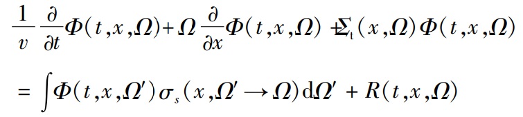 其中,ΣaΣs分别为粒子吸收和散射速率的函数,R为粒子源项,v为粒子速度,σsxΩ′→Ω)为微分散射截面。