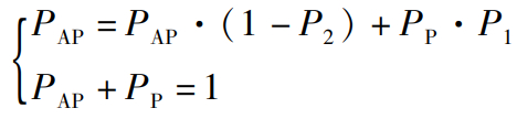 下面考虑对工艺-电压-温度(process-voltage-temperature,PVT)偏差的容忍情况。MTJ器件初始可能处于P状态(概率为PP)或AP状态(概率为PAP)。当MTJ处于P状态时,设在写入电流作用下翻转到AP状态的概率为P1。当MTJ处于AP状态时,在相反方向的写入电流作用下翻转到P状态的概率为P2。即有: