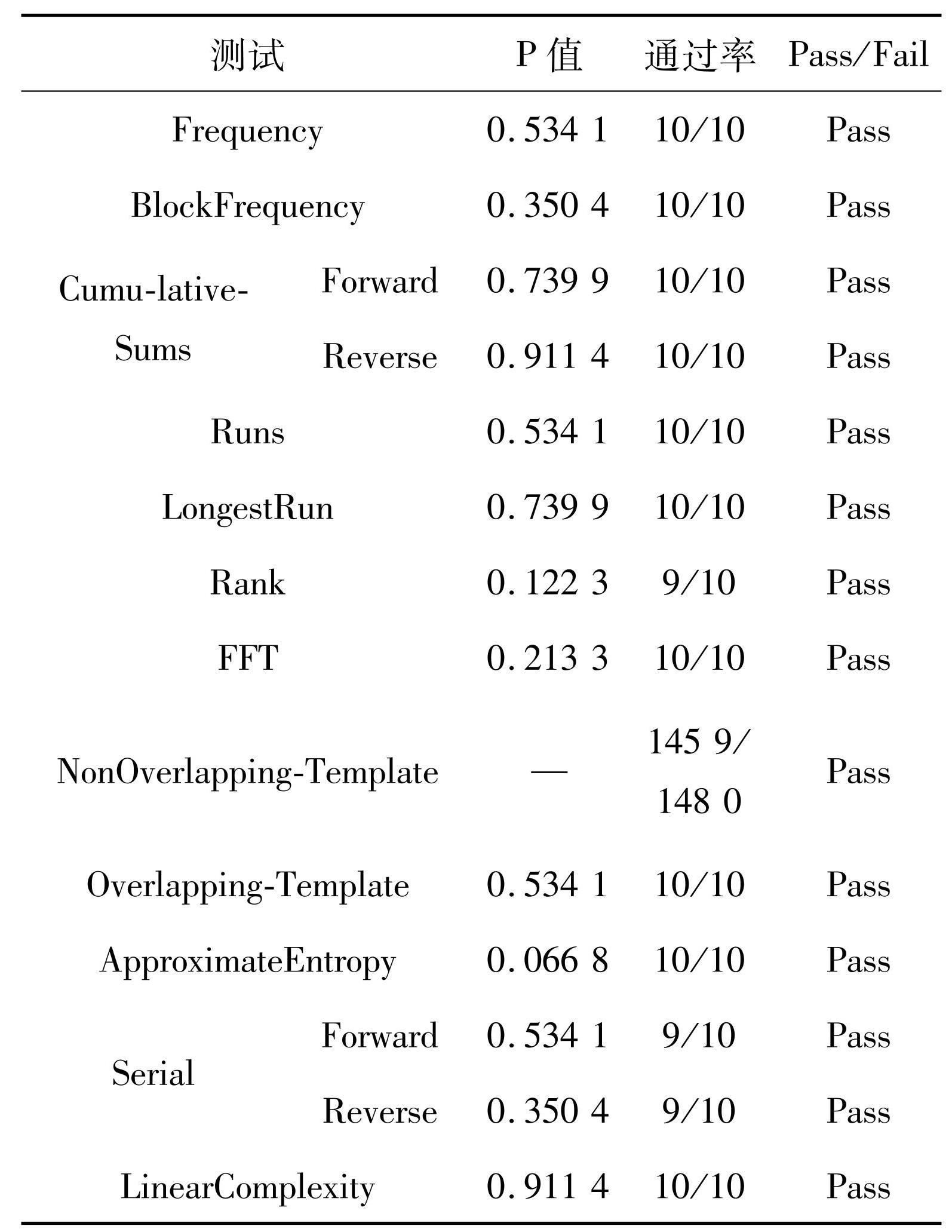 Tab.2NIST test results for the random bit stream