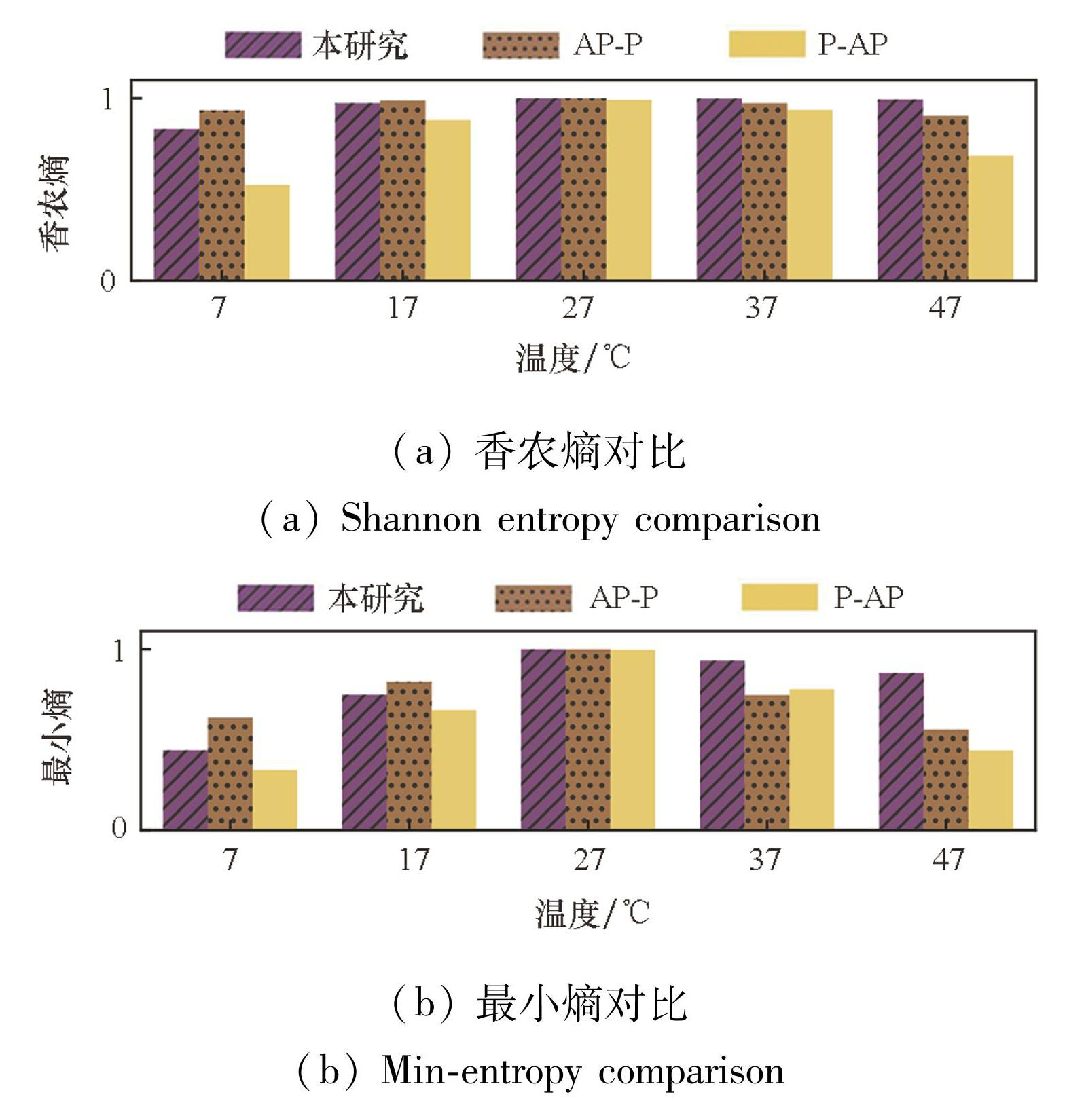 Fig.13Comparison of Shannon and minimum entropy for TRNG control logics under temperature variation