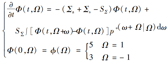 玻耳兹曼(Bolzmann)方程描述高能粒子在介质中的输运过程。定义t时处于位置x,运动方向Ω的粒子角通量密度Φ:=ΦtxΩ)满足玻耳兹曼粒子输运方程: