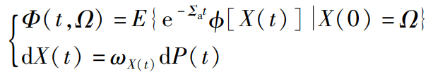 接下来通过概率表示构造马尔可夫过程拟合的解析解。如1.1节所描述的方法,将玻耳兹曼方程描述为随机过程的期望,如式(4)的形式。粒子群的角通量密度的概率表示为:
