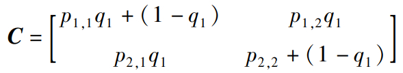 随机过程Xt)表示粒子在t时刻的方向,粒子从初态Ω=1或Ω=-1开始,在泊松过程Pt)发生时触发方向变化,吸收过程则由式(13)中的指数项表示。构造并跟踪表示泊松过程Pt)的马尔可夫链,假设泊松事件发生的概率为q1。不发生的概率为1-q1Pij定义与式(5)一致,则马尔可夫转移矩阵为: