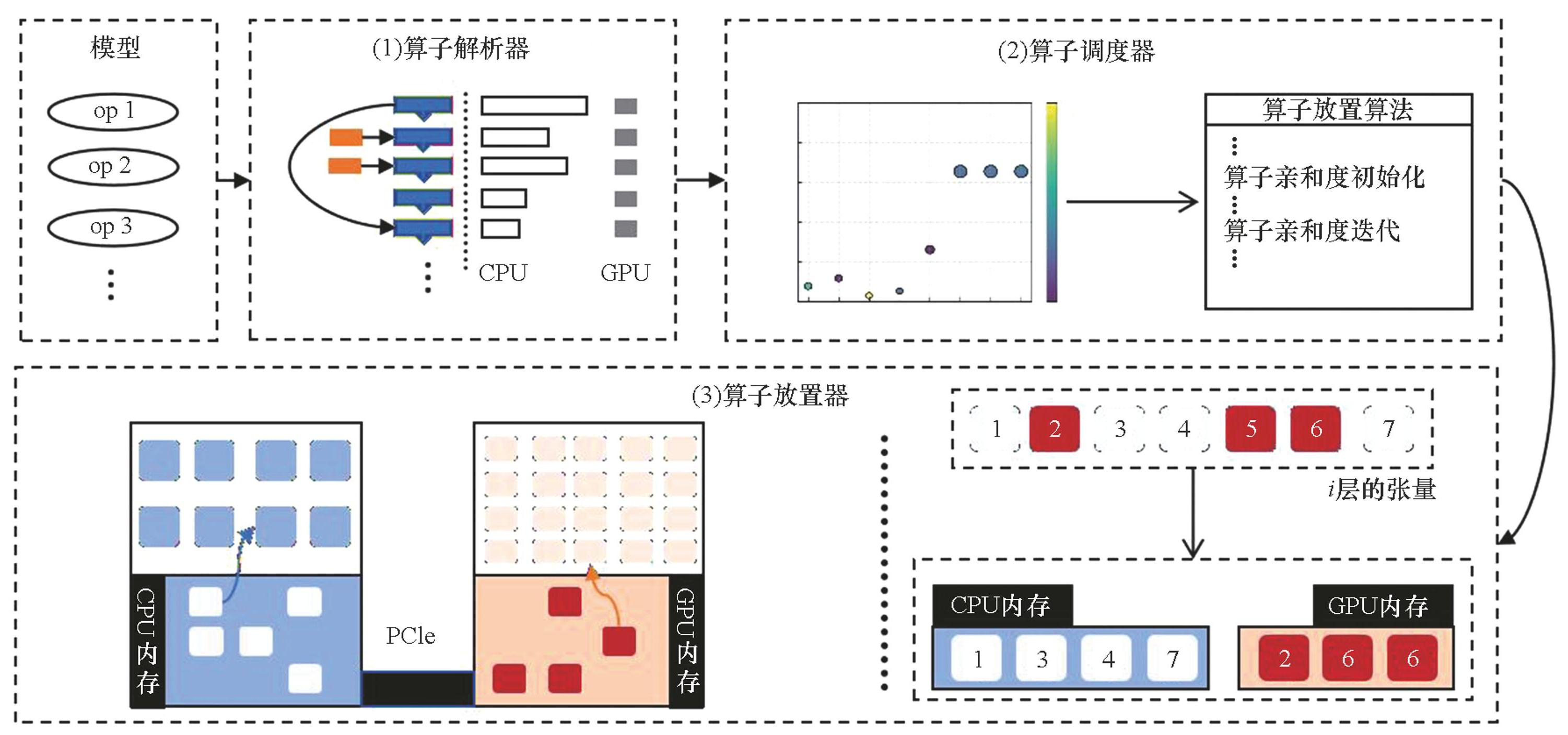 理想状态下,模型卸载需依据LLMs中每层算子的内存需求与计算特性,将其按需部署至CPU或GPU,从而充分发挥硬件效能。为此需攻克三项关键技术挑战:①算子特性表征与分析,需要深入理解LLMs中不同算子的内存需求以及在不同设备上的性能表现;②智能调度算法设计,需要开发自适应算法来决定如何根据算子特性进行放置;③透明化部署机制,需要构建对开发者透明的算子放置机制,无须开发人员手动干预。