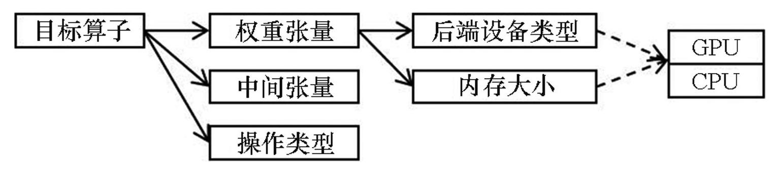 目标算子-后端设备映射关系如图6所示,对于目标算子,算子放置器着重关注其权重张量、中间张量及操作类型这三个关键信息。其中,权重张量作为模型参数的重要载体,具有后端设备类型和内存大小等属性,并直接映射至实际物理设备。因此,研究目标算子的放置问题本质上是探讨权重张量如何放置。