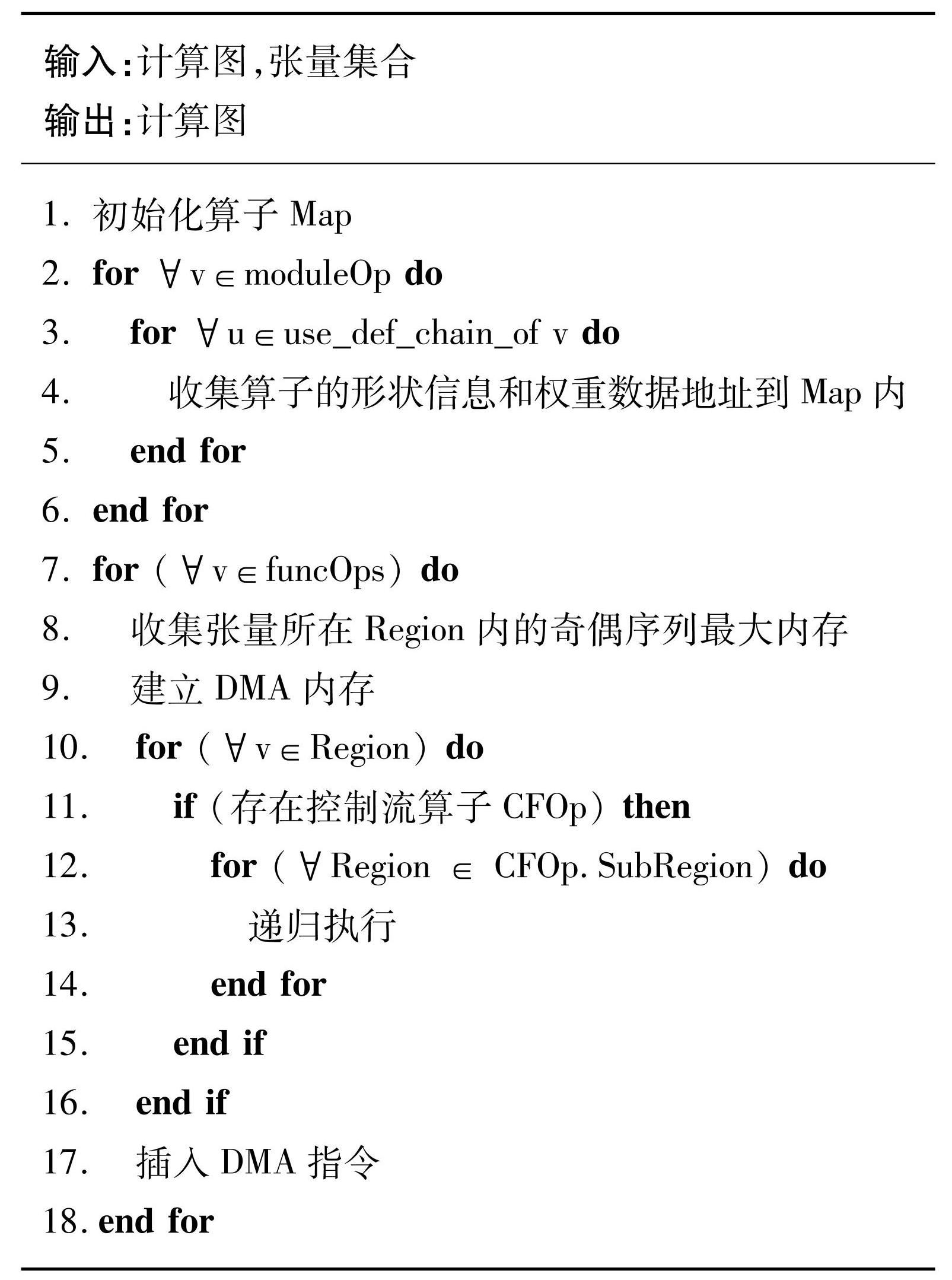 在算法3中,第11行判断是否存在分支控制流节点,若不存在则为无控制流图,直接执行DMA插入操作。若存在控制流节点,递归执行计算图的Region拆分,直到拆分完成,在最终拆分的每个Region内执行DMA插入操作。