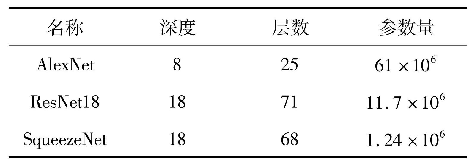 当偏心故障与匝间短路故障复合发生时,匝间短路故障的程度评估能力会受影响。因此,本节使用深度卷积神经网络对复合故障时匝间短路的故障程度进行评估,评估内容包括短路匝数和短路电阻。为进行对比验证,选取AlexNet、ResNet18以及SqueezeNet这三种可靠性经过充分验证的现有网络架构开展研究,主要参数列于表2中。