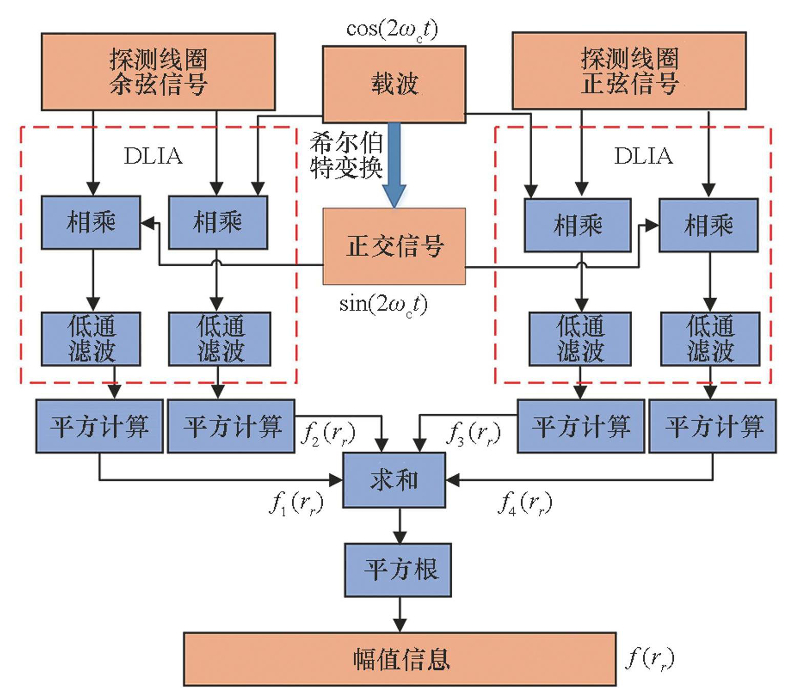 3)对四路信号进行平方计算并记为fi(rr)(i=1,2,3,4),通过正弦和余弦两个包络获取幅值。