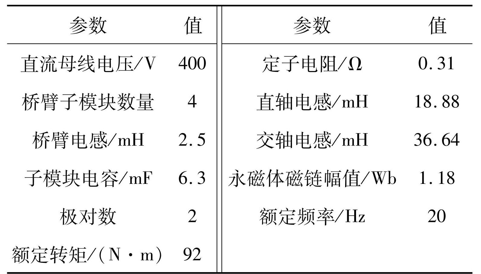 一类思路是改变注入形式,如采用方波共模电压+正弦波环流、方波共模电压+正弦波环流+三次谐波环流和方波共模电压+方波环流等注入形式,可使注入环流峰值分别降低至78.5%、64.7%和50%[12-15]。以上方法虽然降低了注入环流的峰值,但是注入方波共模电压会导致过高的共模dv/dt,引起轴承电流、共模漏电流以及电磁干扰,长期运行将降低电机绝缘性能、影响轴承寿命,而注入方波电流的闭环控制十分困难,在实际工程中很难实现。另一类思路是结合拓扑进行改进,如文献[16]采用全桥型子模块代替半桥型子模块,在应用高频注入法时,可降低电容电压和桥臂环流,但因器件数量翻倍,其优势不明显;文献[17]采用飞跨电容拓扑,将每相上、下桥臂中间抽头通过飞跨电容连接起来,在该结构下采用高频注入法,可使输出端不含共模电压,从而消除了高频共模电压对负载的不利影响。但是该结构增加了额外的电容,且要求子模块数目必须是偶数,经济性和适用性有所降低。