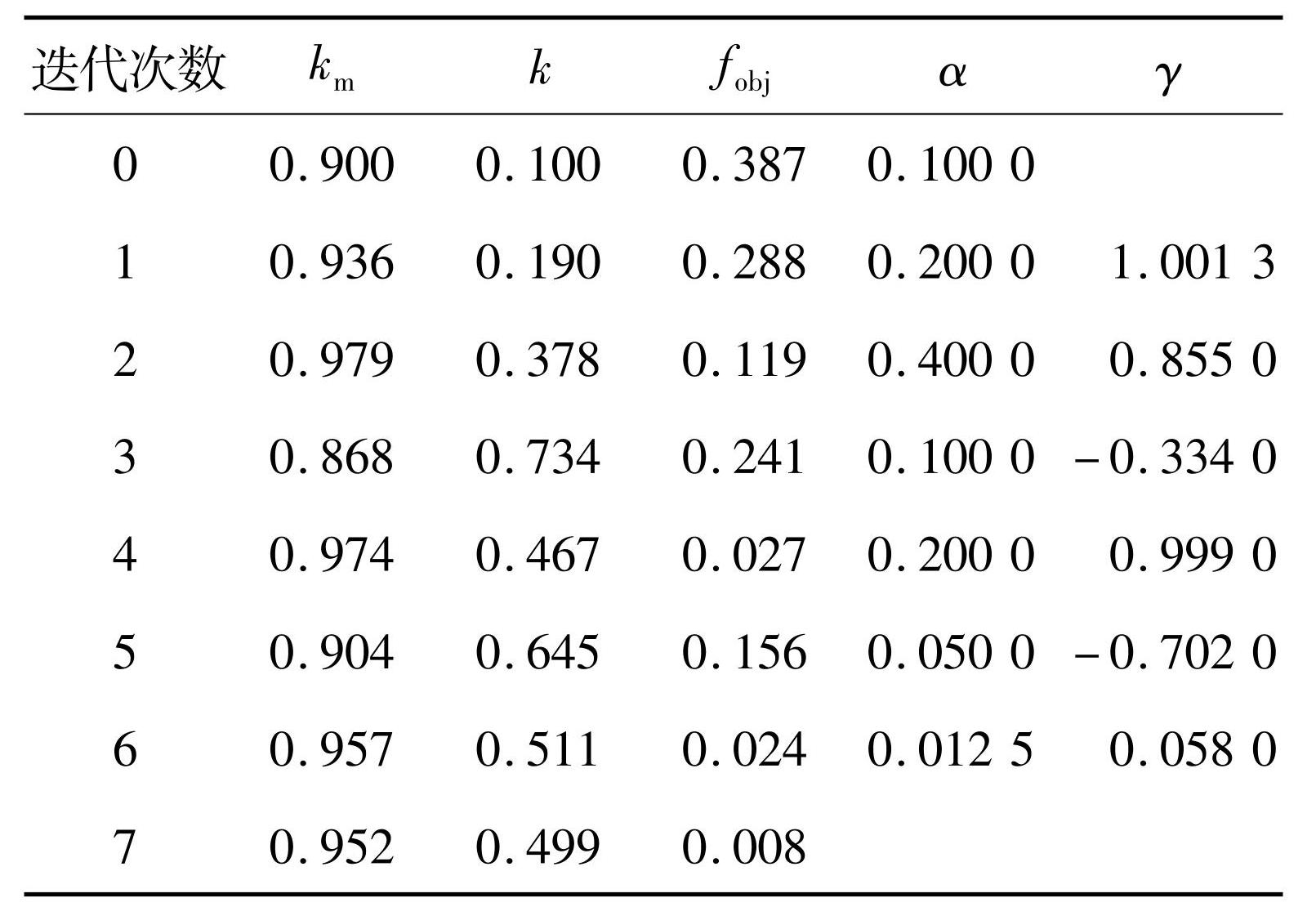 梯度下降法的基本思想是向函数上当前点对应梯度(或者是近似梯度)的反方向的规定步长距离点进行迭代搜索。为提高收敛速度同时避免跨越最优解,本文采用一阶信赖域法进行变步长搜索。其基本思想是采用一阶函数对目标函数进行拟合,当拟合效果好时增加步长,当拟合效果差时缩小步长。具体搜索过程如下: