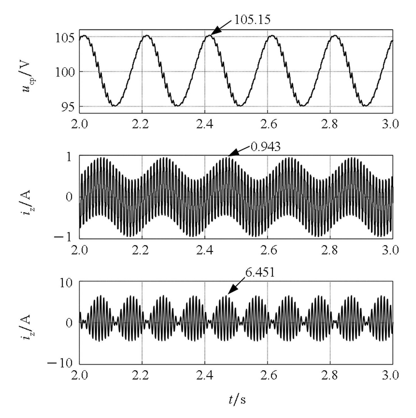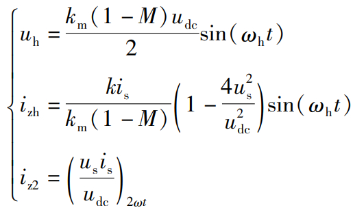 将式(8)代入式(4),可得式(9)所示注入环流表达式。由于角频率为ωh-3ωωh+3ω的分量远小于ωh-ωωh+ω的分量,为简化计算,izh的表达式仅保留了角频率为ωh-ωωh+ω的分量。