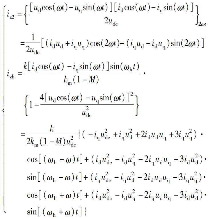 Iz0=kmM(1-M)udc2idsinθ-iqcosθ+kmudcMz2iqud-iqMud+iduq-idMuqcosθ2+k-idudc2+2iquduq+iduq2+3idud2Mzh2cosθh2+Mzh1cosθh1+kmudcMz2-idud+idMud+iquq-iqMuqsinθ2+kiqud2+2iduduq-iqudc2+3iquq2Mzh2sinθh2-Mzh1sinθh1/4kmudc21-M+Mz0-MMz0
