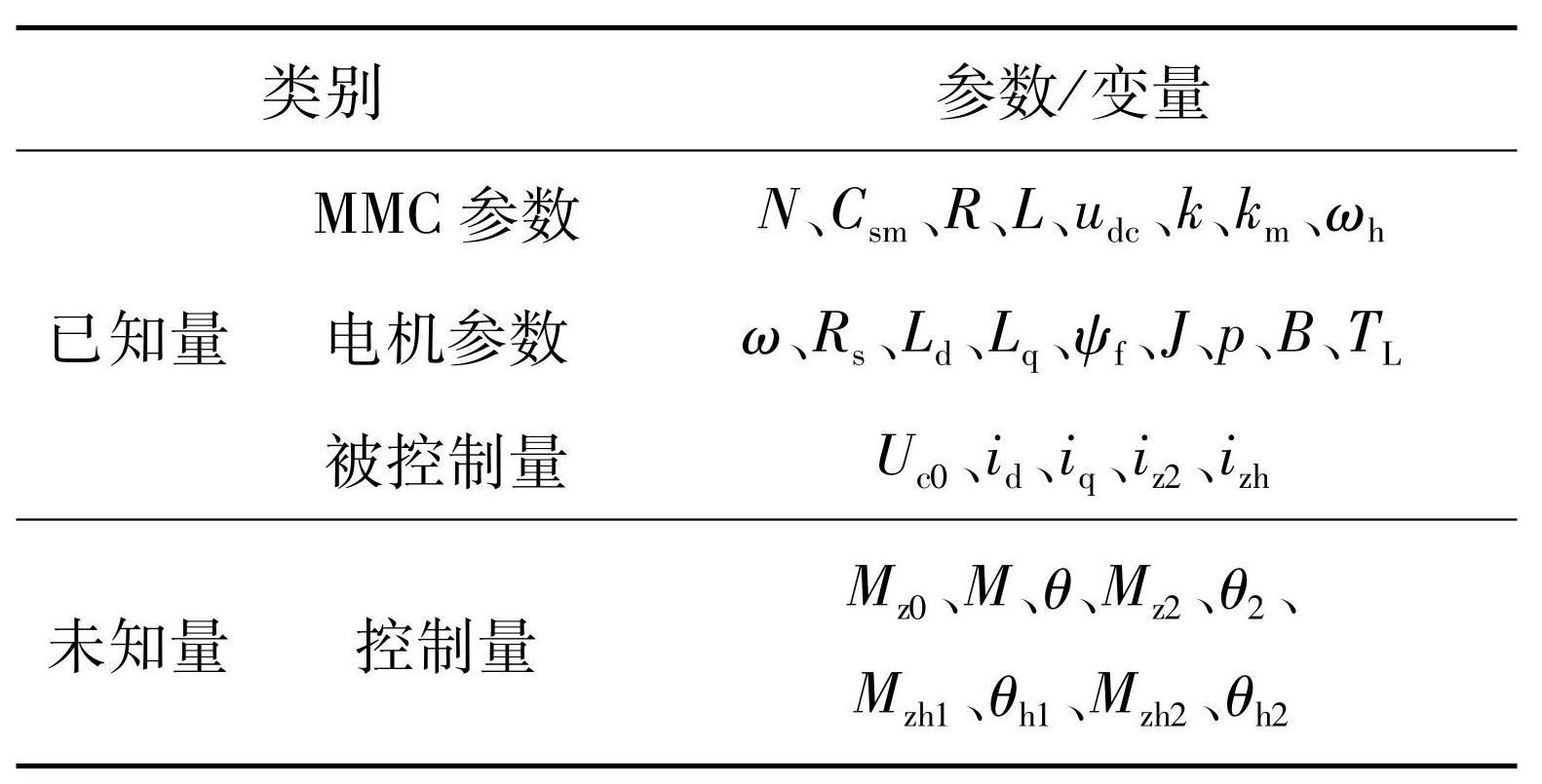 为明确模型的适用范围,进行如下假设:①当MMC驱动系统运行于稳态时,均压控制、环流控制、电机调速控制使得相关电气量均稳定在目标值;②电机绕组三相对称;③忽略4倍频及以上的环流谐波及2倍频以上的输出电流(注入量除外)。需要说明的是,在计算中所考虑的谐波次数可以根据精度需求给定,下述推导步骤相同。