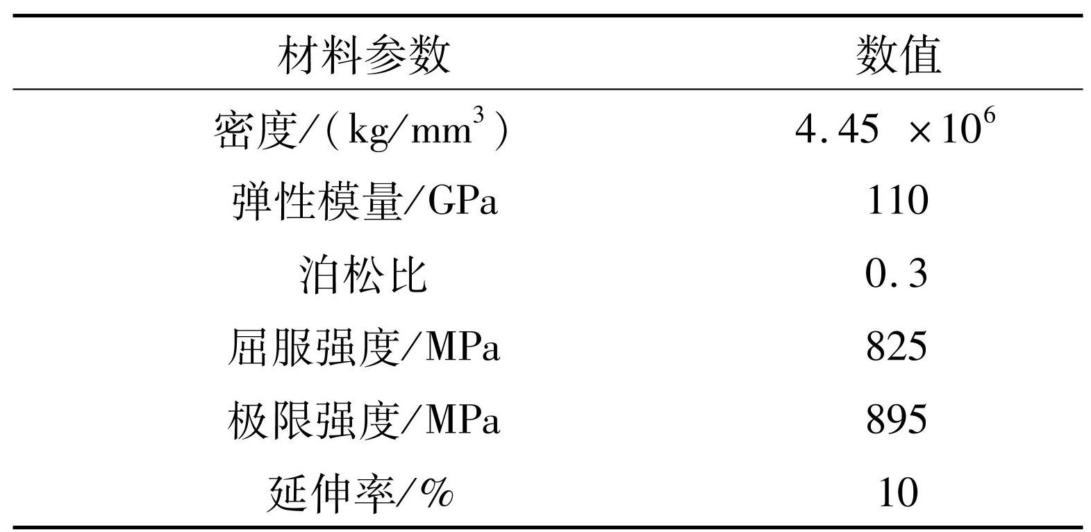 加筋壁板中各部件采用钛合金材料,具体材料参数如表1所示。为便于轴向压载施加,建立“L”形弹性边界分别与上下端框对接,下端边界固支约束,上端边界施加轴向载荷压缩。建立加筋壁板的参数化有限元模型,模型采用壳体单位(S4R),通过隐式动力学分析板壳轴压后屈曲过程。模型经结构网格无关性分析和加载速度无关性分析验证[20],确定模型的网格规模为8 700个单元、9 212个节点。在上边界匀速向下施加10 mm的轴向位移,加载速度为200 mm/s。根据工程设计经验,该结构的初始设计几何参数及可设计范围如表2所示。