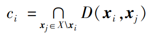 其中:D(xi,xj)表示由样本点xi与xj之间连线的中垂线分割形成的封闭区域;X为当前样本点集合;xi为单元ci的中心,ci中任意一点与其中心xi的距离均小于距其他样本点的距离。