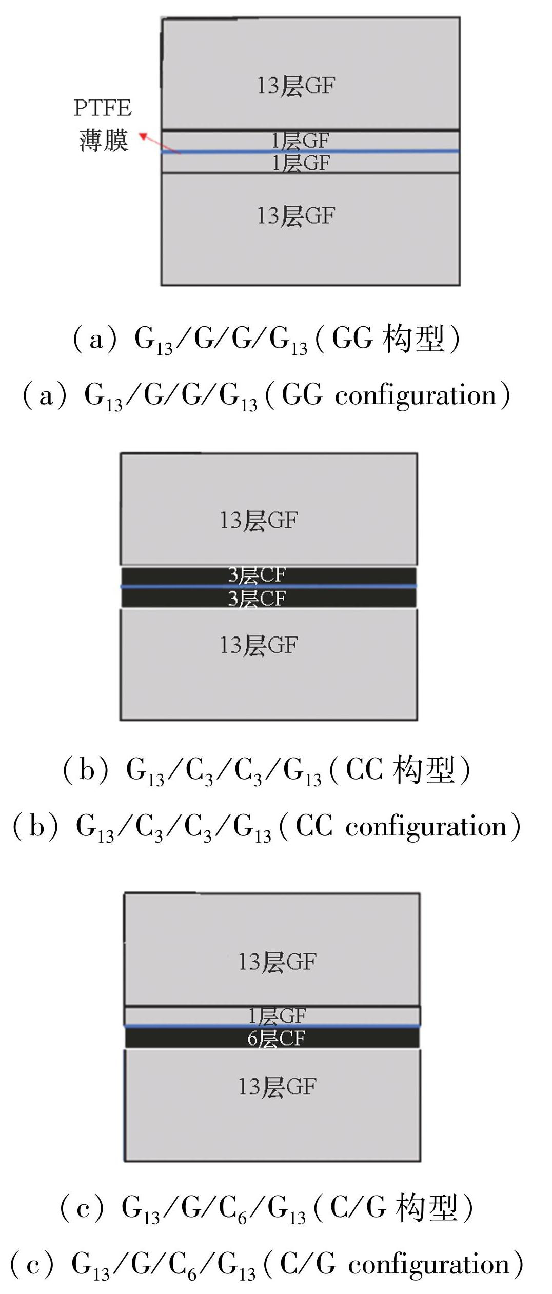Fig.2Schematics of the composite layup configurations containing pre-inserted delamination