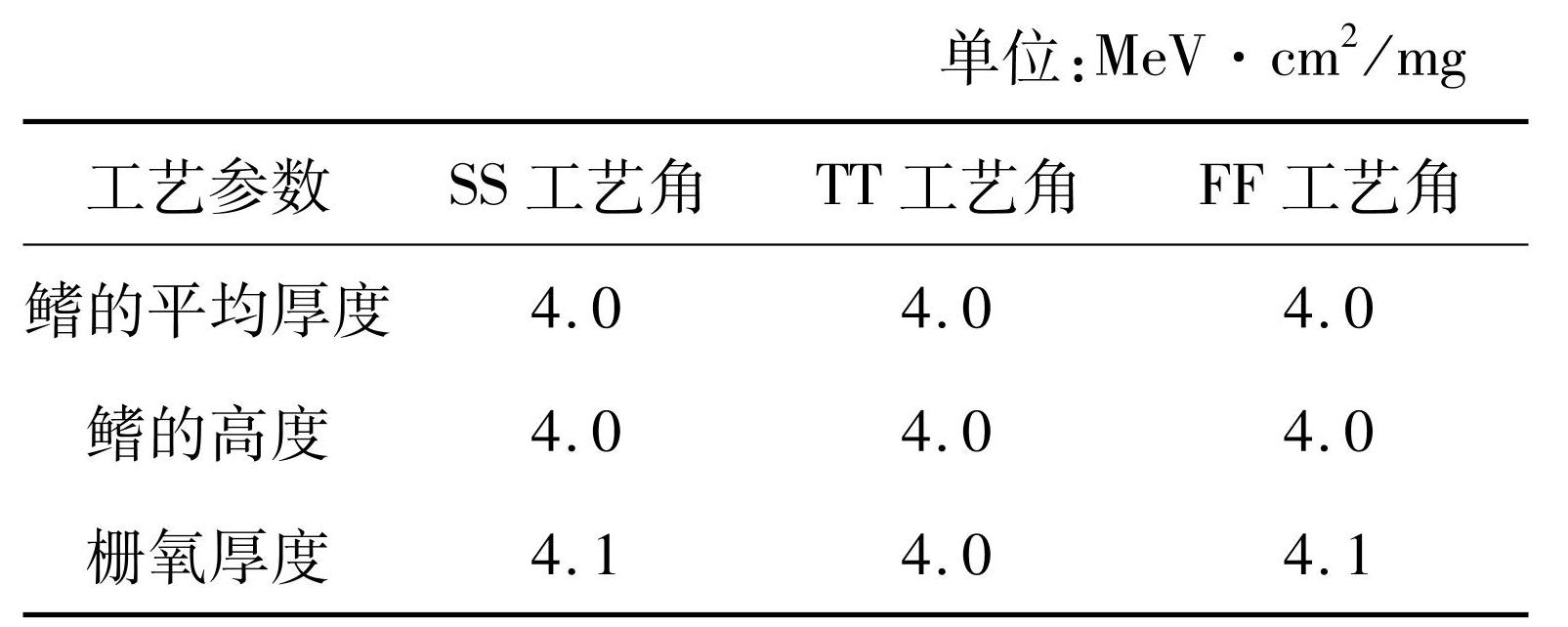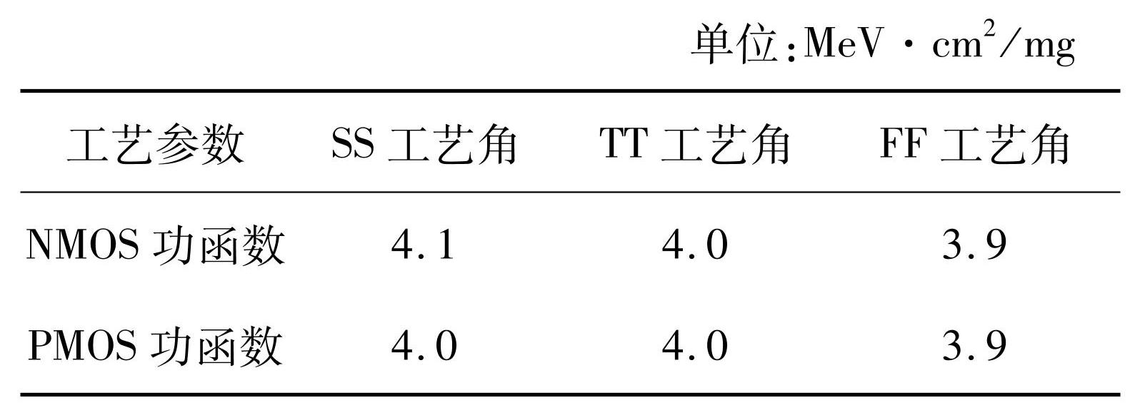 表3不同工艺角下SRAM单粒子翻转阈值仿真结果
