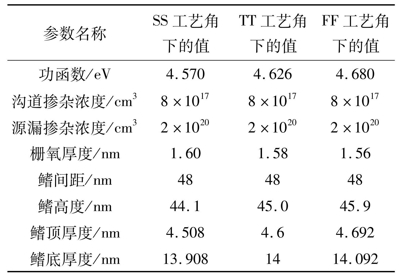 表1NPG晶体管在不同工艺角下关键结构和掺杂的参数值