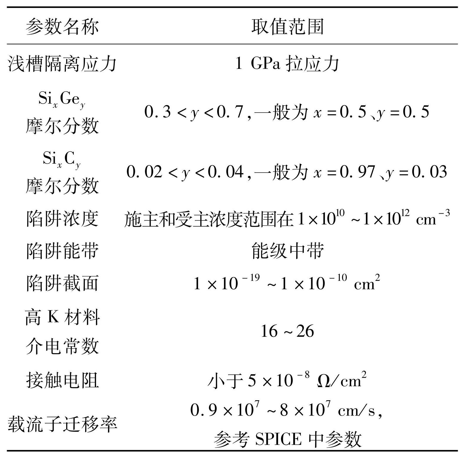 表2FinFET器件关键参数取值范围