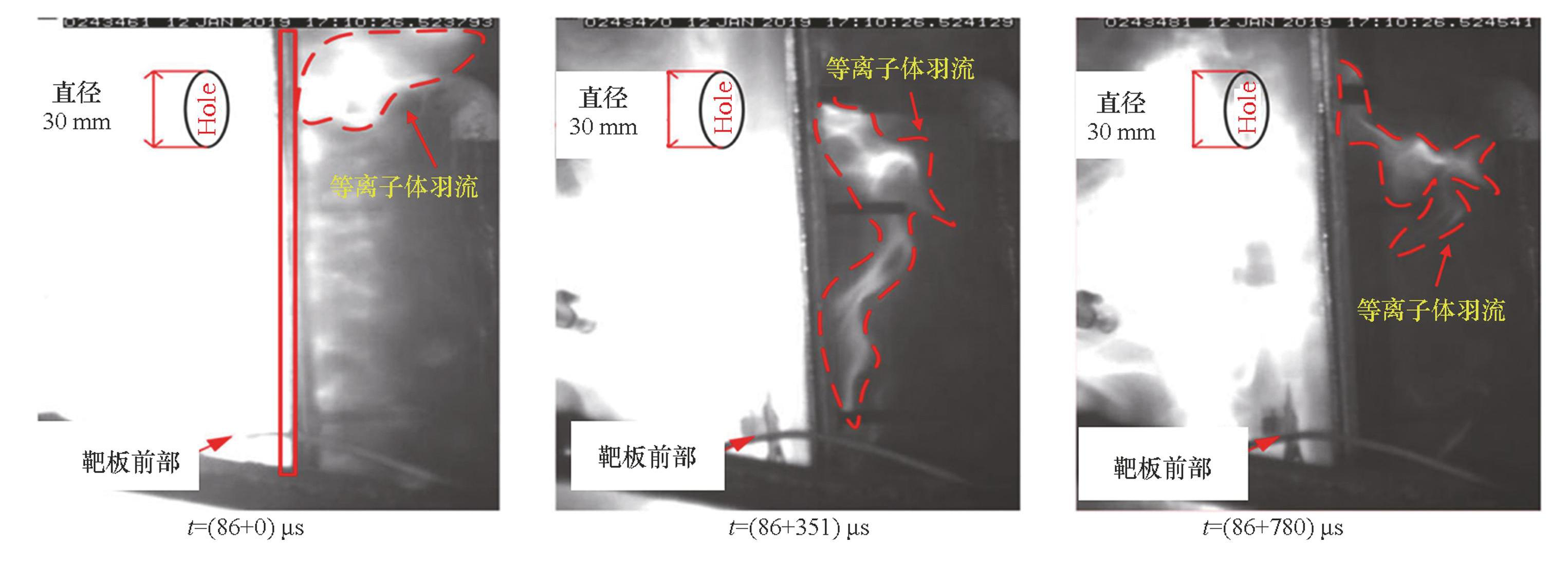 实验研究的探索始于20世纪60年代,Friichtenicht与Slattery的开创性工作首次证实,μm级粒子以超高速撞击靶体时,能够产生持续时间在μs量级的等离子体云,如图5所示[29]。他们通过分析发现,产生的总电荷量Qe与弹丸的质量mp和速度vp显著相关,并提出了经典的电荷产量经验公式:Qe∝(mpαvpβ,其中,αβ为指数。随后,不同研究者基于各异的弹靶材料、速度区间和诊断技术,得到的指数αβ存在显著差异。