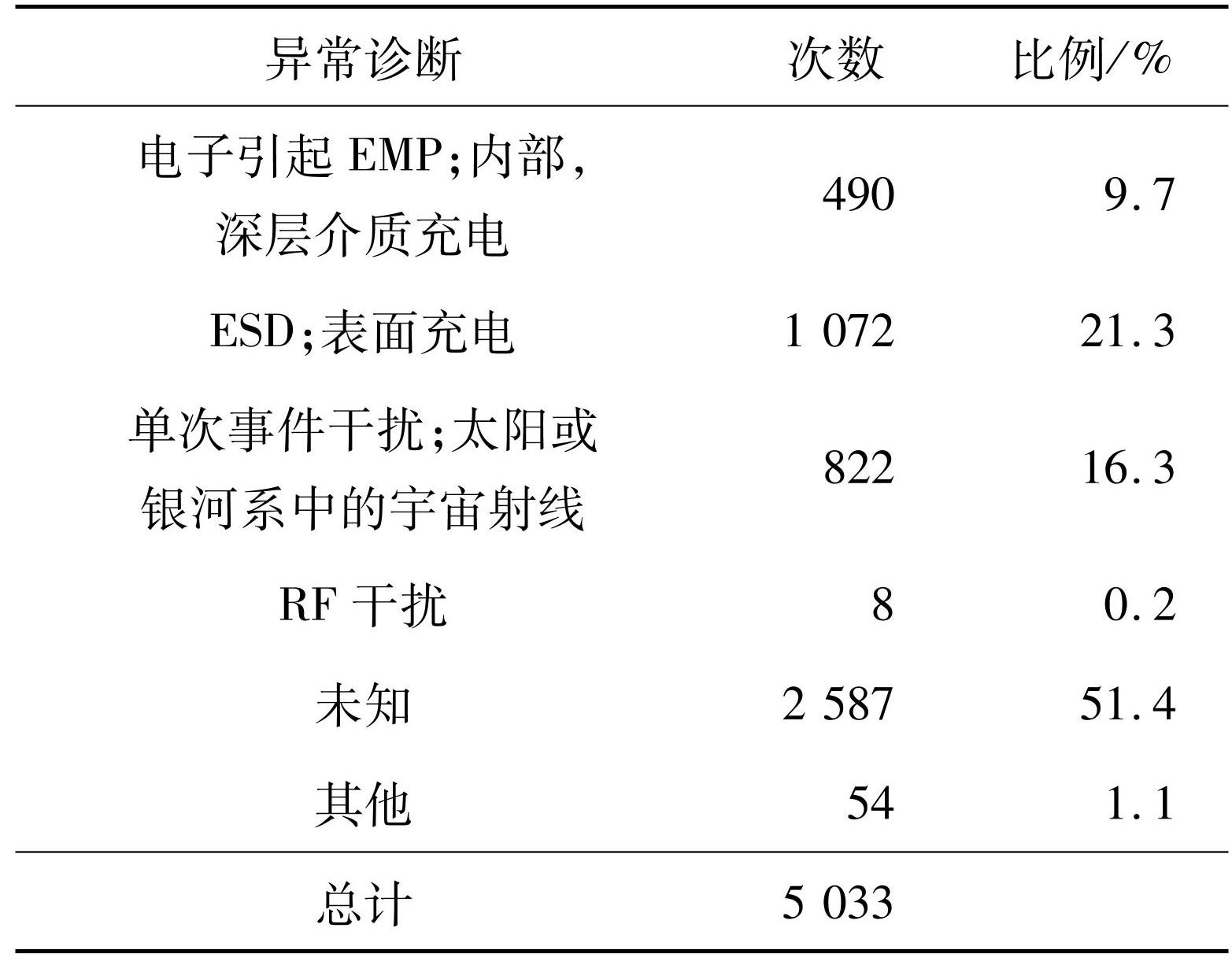 美国国家地球物理数据中心(NGDC)的统计数据库明确揭示了这一威胁的严重性:在有记录的航天器在轨异常事件中,归因于静电放电和电磁效应的故障数量高达数千起,见表1,其中有相当一部分可能与未被直接观测到的微小粒子撞击事件相关[26]