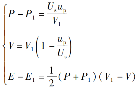 其中:PVE分别代表冲击波阵面处的压力、比容(单位质量的体积)和比内能(单位质量的内能);下标“1”表示材料在冲击前的初始状态(通常P1E1可视为零);Us为冲击波在材料中的传播速度,而up为冲击波后方物质的粒子运动速度。