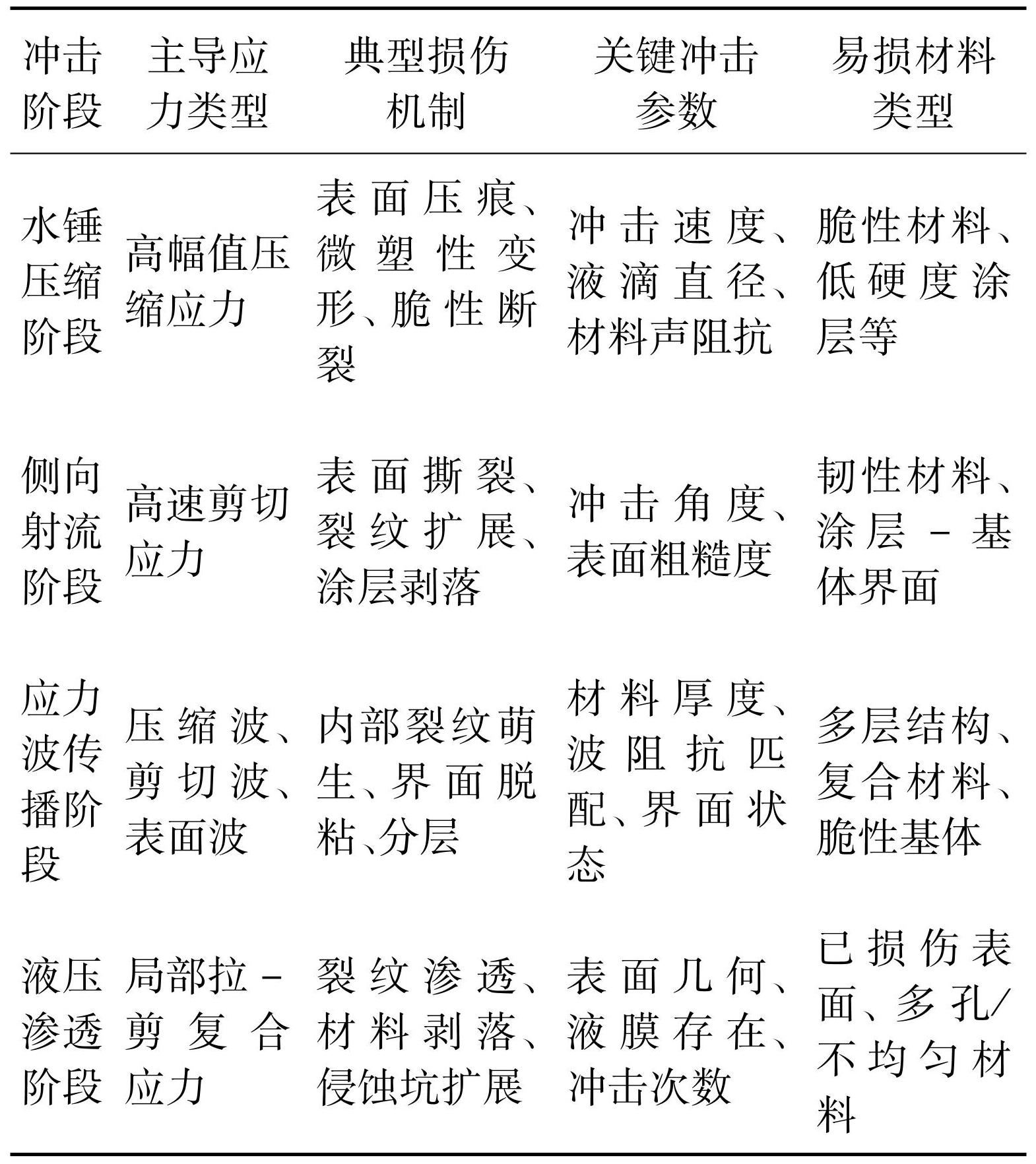 综上所述,高速雨滴冲击诱发的材料损伤本质上是冲击参数(速度、角度、液滴尺寸等)决定的瞬态应力场与材料动态响应特性(强度、韧性、界面结合状态等)相互作用的结果。为系统揭示不同工况下的主导损伤机制,可建立统一框架如表1所示。