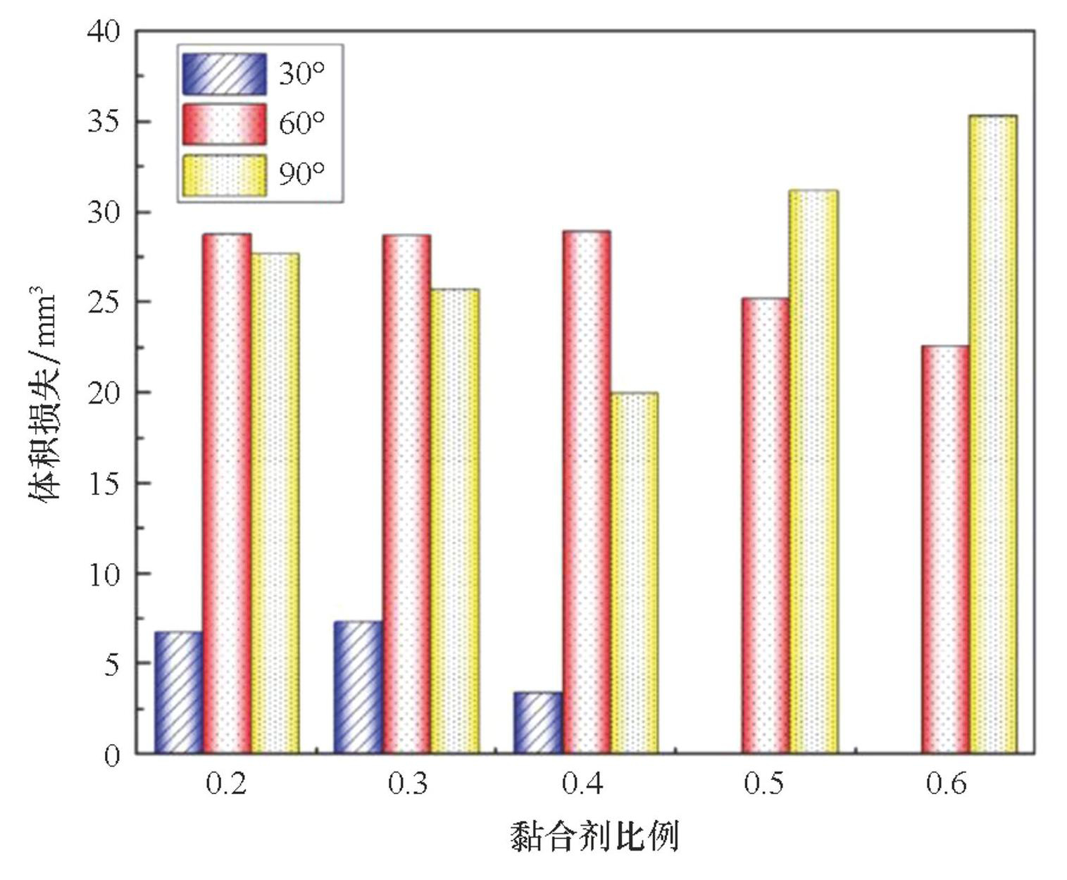 7不同冲击角度下雨滴侵蚀5 min后不同黏合剂比例的聚氨酯涂层体积损失[21]