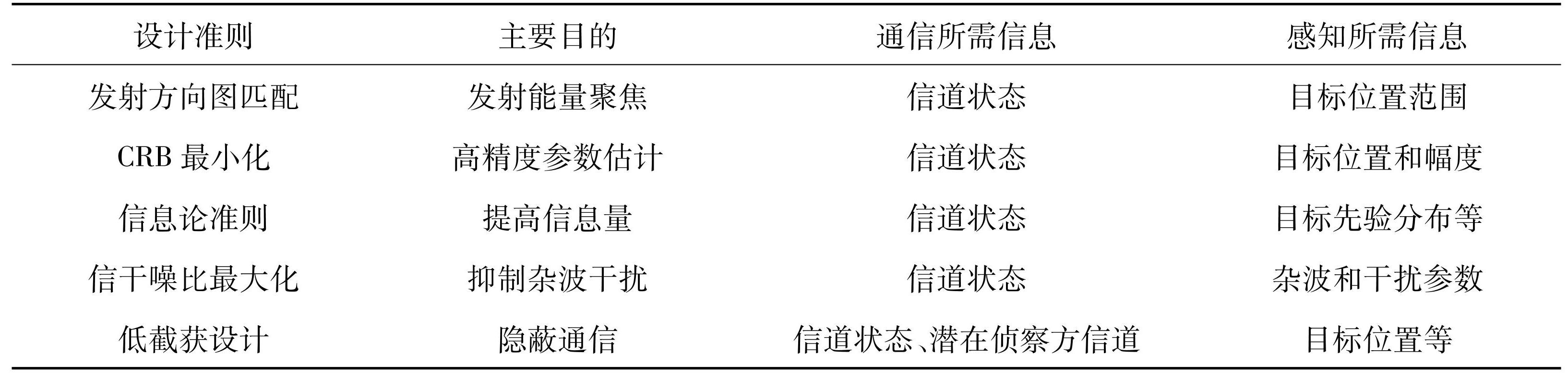 表2MIMO雷达通信一体化波形设计准则对比