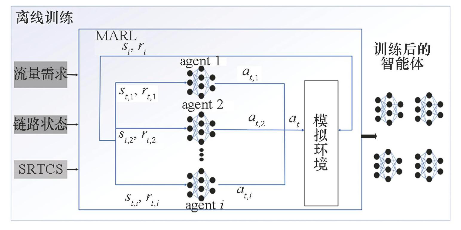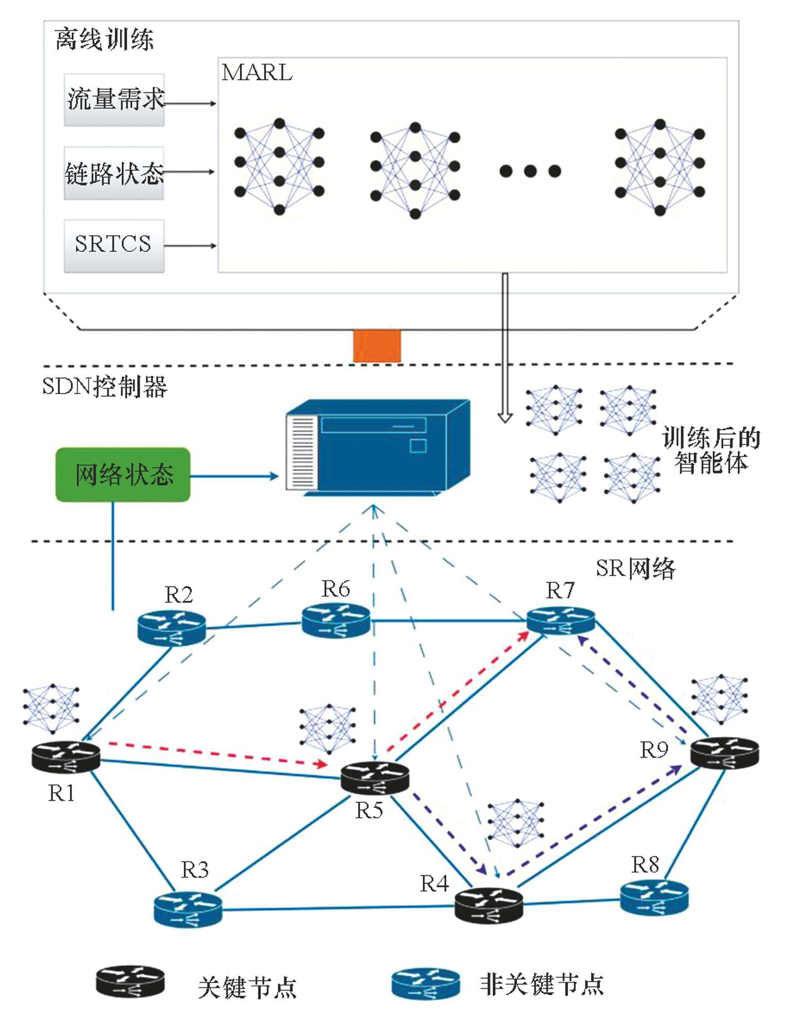 摘要:结合软件定义网络与分段路由(segment routing,SR)可优化网络性能,但在大规模动态网络中,其关键节点链路利用率过高会导致队列延迟激增。为此,提出深度强化学习与负载中心性理论融合的分段路由优化算法(segment routing optimization algorithm fusing deep reinforcement learning and load centrality theory,SROD-LC)。通过负载中心性理论量化网络节点重要性,识别关键节点并监控其链路负载状态;利用多智能体强化学习框架,在关键节点部署分布式深度强化学习智能体,通过共享奖励机制协调路由决策,实现链路负载的主动优化。同时结合SR的灵活性,动态调整段标识列表快速重路由部分流量,降低本地链路利用率并规避潜在拥塞。基于真实网络拓扑的模拟实验结果表明:当SR关键节点比例在0.3~0.5范围时,SROD-LC优化效果显著,与基准算法相比,可将网络最大链路利用率降低21%~35%。
