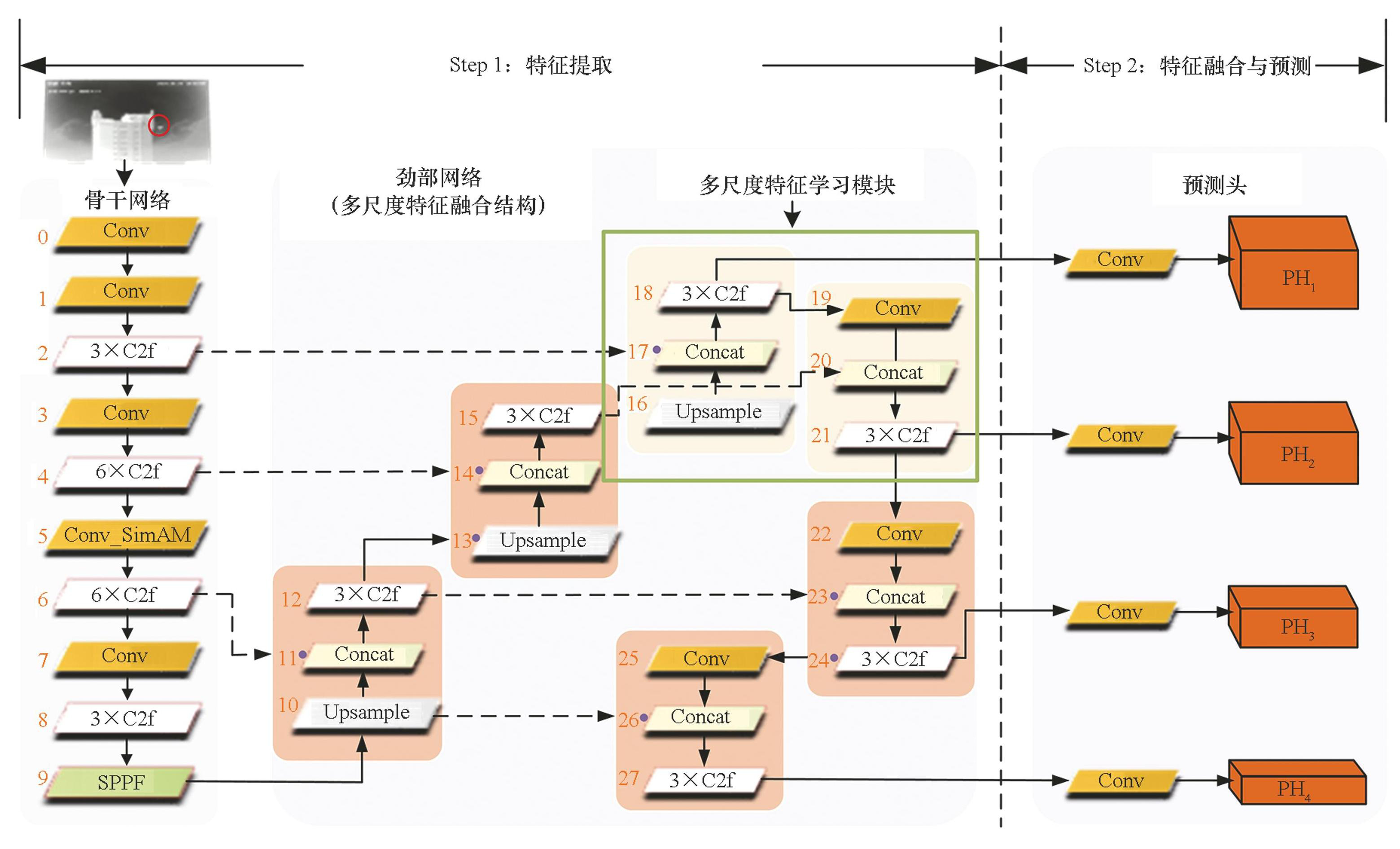 摘要:针对无人机目标体积小、在图像中所占像素少、纹理细节信息弱、算法难以有效提取红外无人机目标特征导致检测精度较低等问题,提出多尺度学习的目标检测算法。通过在模型的颈部网络中构造多尺度特征融合结构,引入多尺度特征学习模块,将深层网络和浅层网络的特征进行级联,获取目标在多个尺度上的特征,丰富特征图的语义信息和特征信息,显著提高了算法对小型无人机目标的检测精度。在训练过程中使用SIoU代替CIoU损失函数,使网络模型在训练过程中损失最小化,提高了回归精度。实验结果表明,与其他红外小目标、主流检测算法相比,所提方法能有效提高无人机目标的检测精度,在实际应用中可以满足探测无人机目标的检测精度需求。