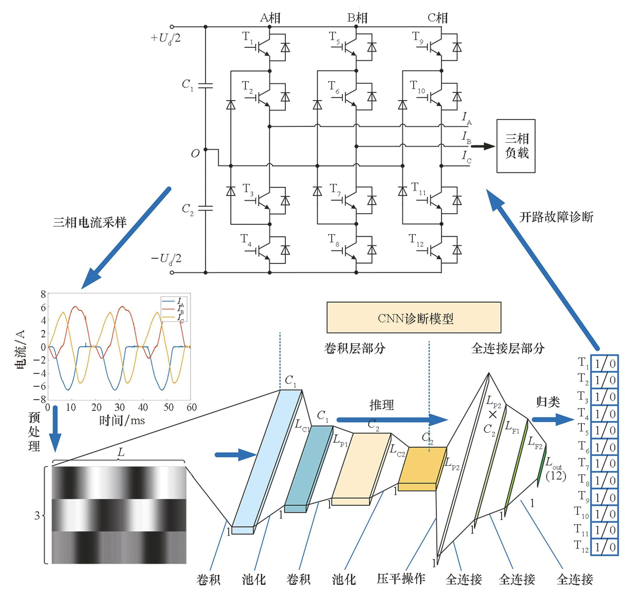 摘要:为了解决电力电子逆变器开路故障智能诊断面临的实际故障样本缺乏、变特征适应性问题,相应从数据、算法两大智能化要素角度提出了一套优化方法,以支撑电力电子逆变器开路故障智能诊断的实际应用。数据要素方面,提出基于逆变特性的故障样本扩增方法,明确了诊断模型训练所需的最少实际样本量;算法要素方面,提出一种诊断模型注意力增强方法以及模型频率点自适应训练方法,显著提高了面对逆变器宽频运行的模型训练效果及诊断准确率。实验验证了上述智能化要素优化方法的有效性。