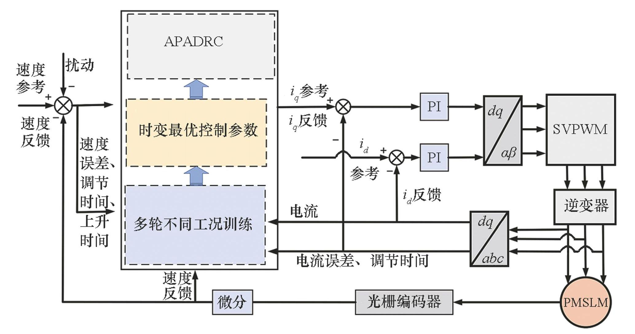 摘要:提出一种融合深度强化学习与改进粒子群优化的自适应自抗扰控制策略,旨在提升永磁同步直线电机的速度与推力控制性能。通过建立电机数学模型并分析其动态特性,设计基于深度强化学习粒子群优化的控制框架,利用强化学习中的奖励机制与环境交互,动态优化自抗扰控制器参数以应对运行条件变化及外部扰动。改进粒子群算法引入分区惯性权重机制,结合历史全局最优数据循环更新策略,优化神经网络权重,从而提高控制策略的搜索效率与优化精度。实验结果表明,相比传统粒子群优化自抗扰控制算法,所提方法显著提高了电机位置与速度跟踪精度,增强了系统稳定性及抗推力扰动能力,验证了创新策略的有效性。