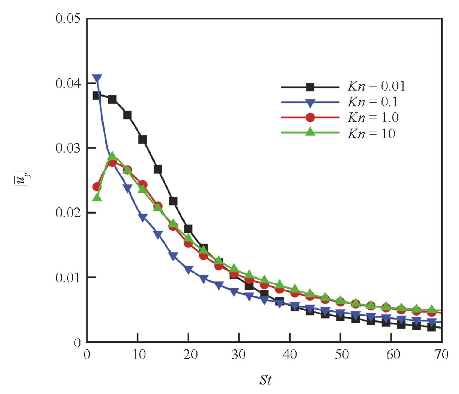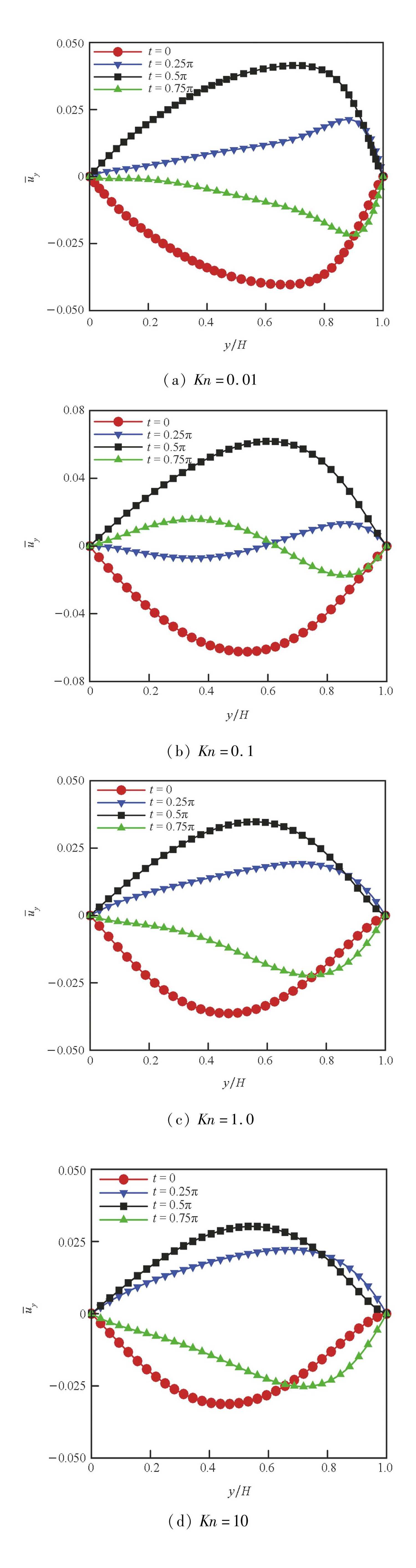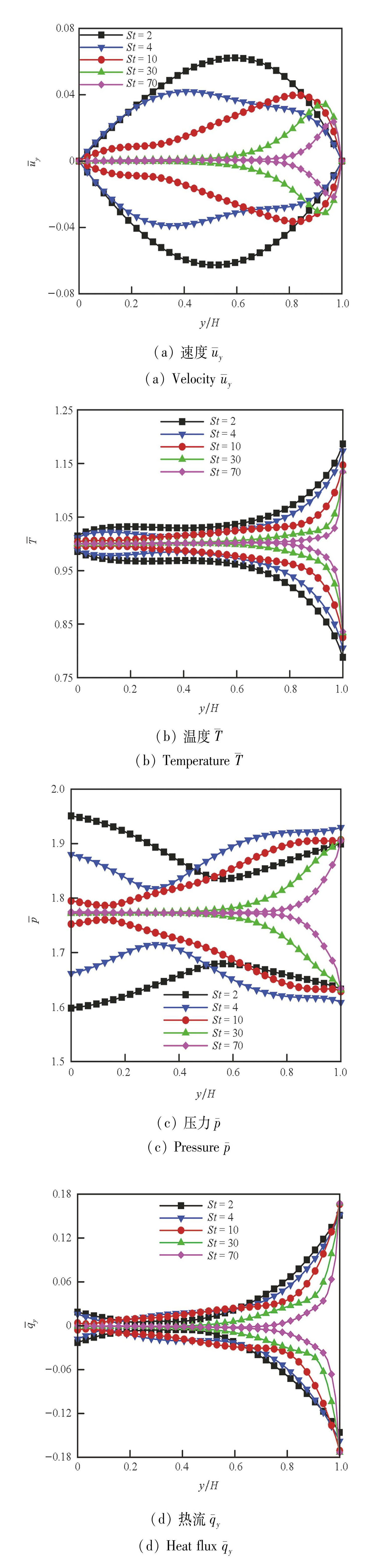 摘要:对二维方腔中顶盖温度振荡驱动稀薄流动进行研究,分析克努森数Kn与顶盖温度振荡频率对流场参数的影响规律。在靠近壁面处基于介观方法求解Shakhov模型方程,中心流域基于宏观方法减少计算资源消耗。宏观/介观虚拟边界利用高阶Hermite多项式重构分布函数,以封闭数值迭代格式。仿真结果表明:耦合方法相较全流场介观尺度方法,对方腔垂直中线处温度的预测结果相符,最大计算误差为0.23%,计算内存消耗降低约69.91%。耦合方法能够捕获振荡热驱稀薄流动在大Kn流域的非线性现象,此时水平方向速度分布不再服从周期振荡余弦函数规律,上升时间远大于下降时间。黏性穿透层厚度与受扰区域随着Kn的增大而增大,随着St的增大而减小。