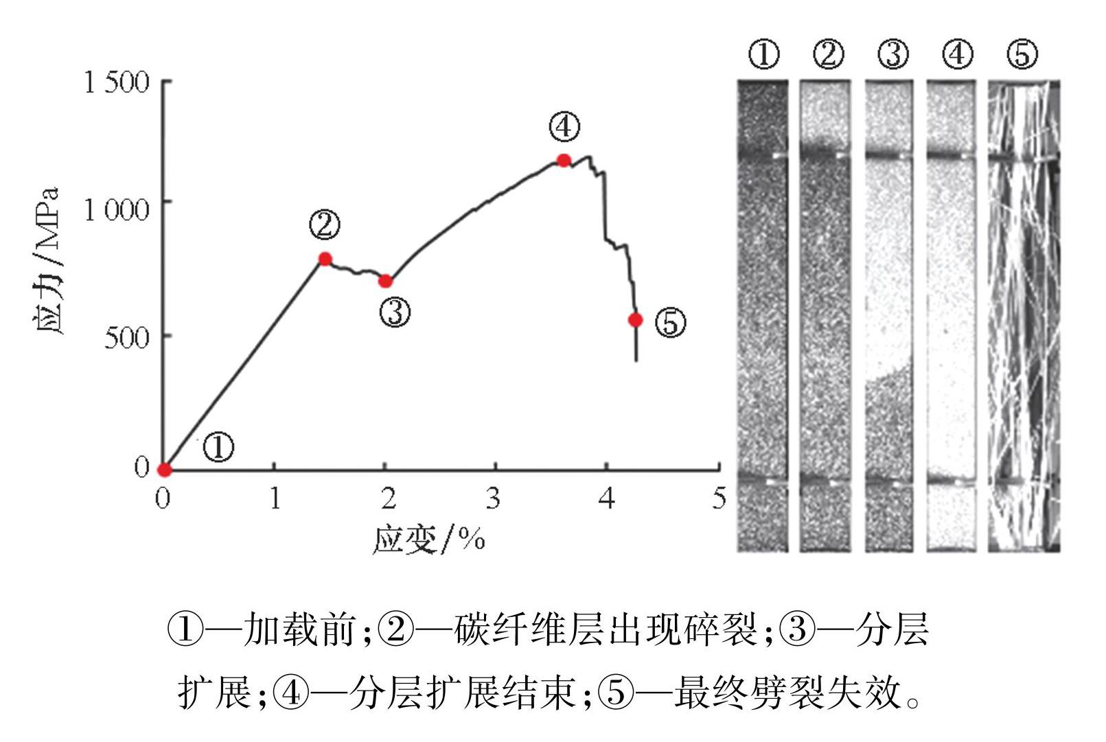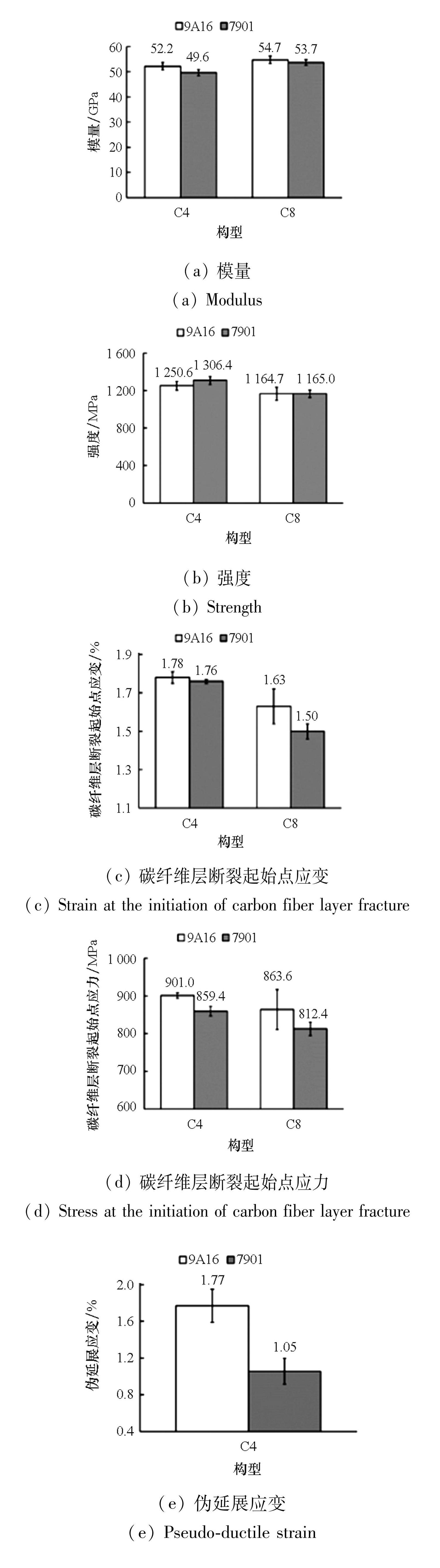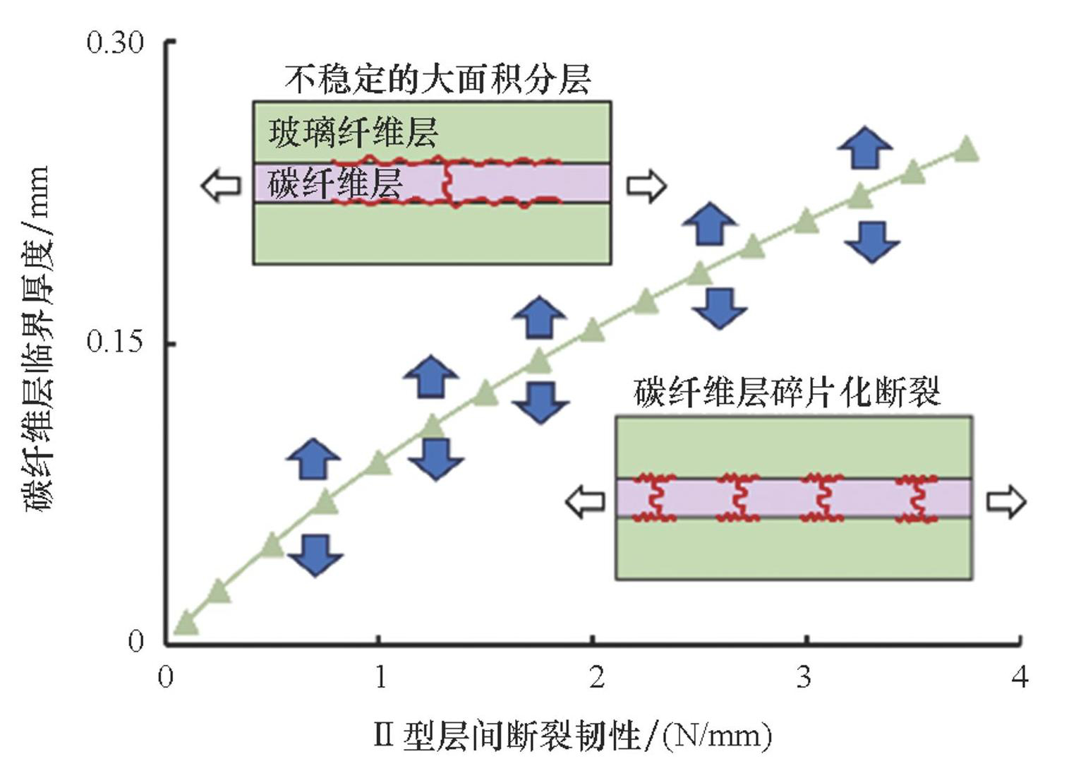 摘要:为探究纤维混杂复合材料层间性能对其拉伸力学性能的影响,采用7901和9A16两种不同韧性的环氧树脂作为基体,设计和制备了含不同碳纤维铺层数的碳/玻混杂复合材料。并通过理论推导和实验相结合的方式探究了Ⅱ型层间断裂韧性(GⅡC)对碳/玻混杂复合材料失效机理和力学性能的影响规律。结果表明,Ⅱ型层间断裂韧性越大,碳纤维层越趋向于碎片化断裂,具有更高地实现碎片化断裂的临界厚度,有利于伪延展行为的实现。此外,Ⅱ型层间断裂韧性对混杂复合材料模量、强度的影响不显著,变化均在5%以内;但其对伪延展应变有较大影响,当Ⅱ型层间断裂韧性由1.75 N/mm增加到2.08 N/mm时,伪延展应变下降了40.7%。