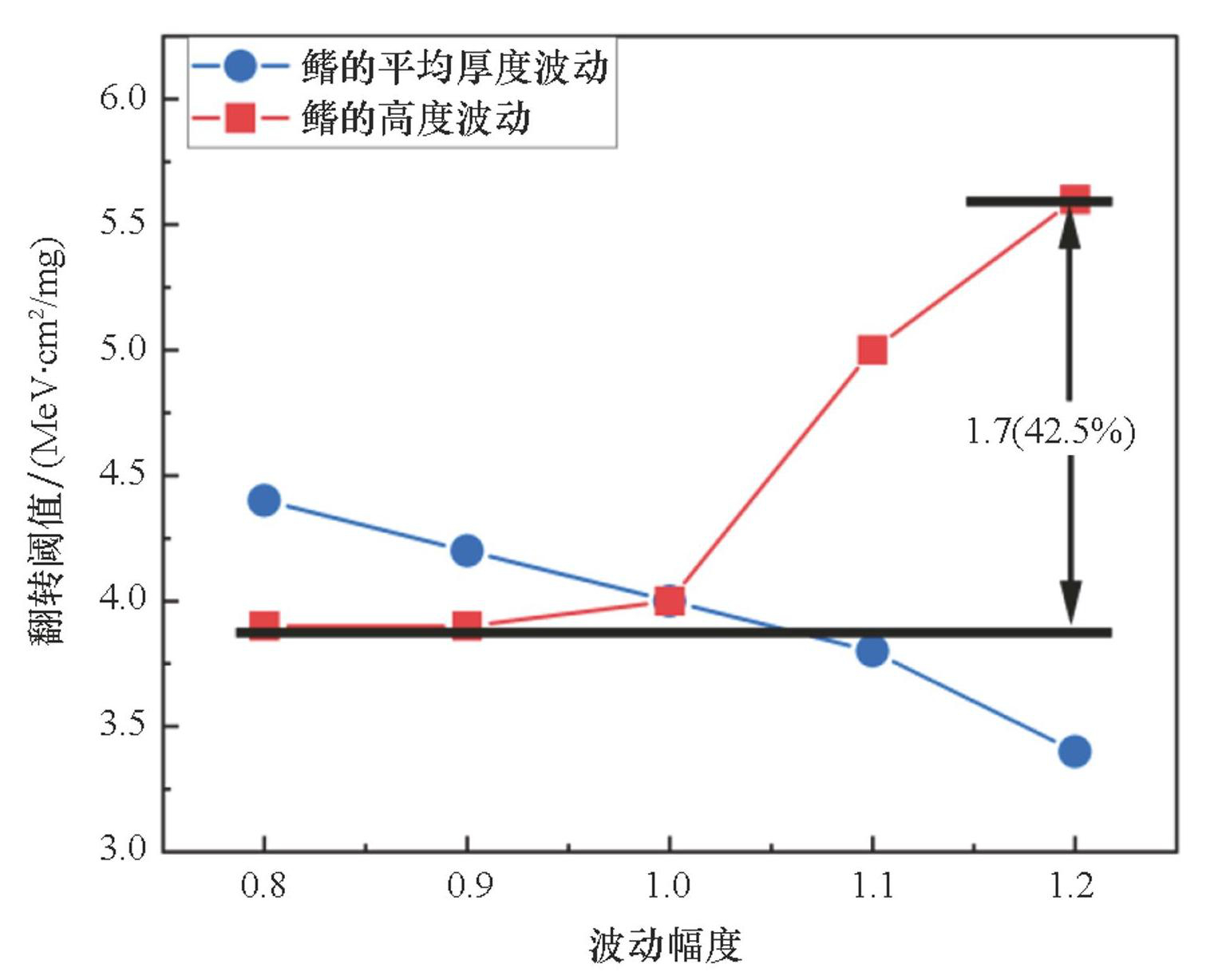 摘要:为了探究工艺涨落对亚20纳米鳍式场效应晶体管(fin field-effect transistor,FinFET)工艺静态随机存储器(static random-access memory, SRAM)单粒子翻转特性的影响,通过建立与商用工艺接近的高精度三维计算机辅助工艺设计模型,对不同工艺角下FinFET SRAM的单粒子翻转特性进行仿真。仿真结果显示,FinFET工艺SRAM的单粒子翻转阈值在不同的工艺角变化下产生微小波动,且敏感位置都在N型金属氧化物半导体上。为了明确具体的工艺参数涨落对单粒子翻转阈值的影响,对鳍的厚度、鳍的高度、栅氧厚度、功函数波动造成的单粒子翻转特性的影响进行研究。仿真结果表明,前两种因素对翻转阈值未产生影响,后两种因素对翻转阈值造成了微小的波动。首次发现工艺涨落对FinFET SRAM单粒子翻转阈值的影响大幅降低,该发现对研制高一致性的抗辐射宇航用集成电路具有重要意义。