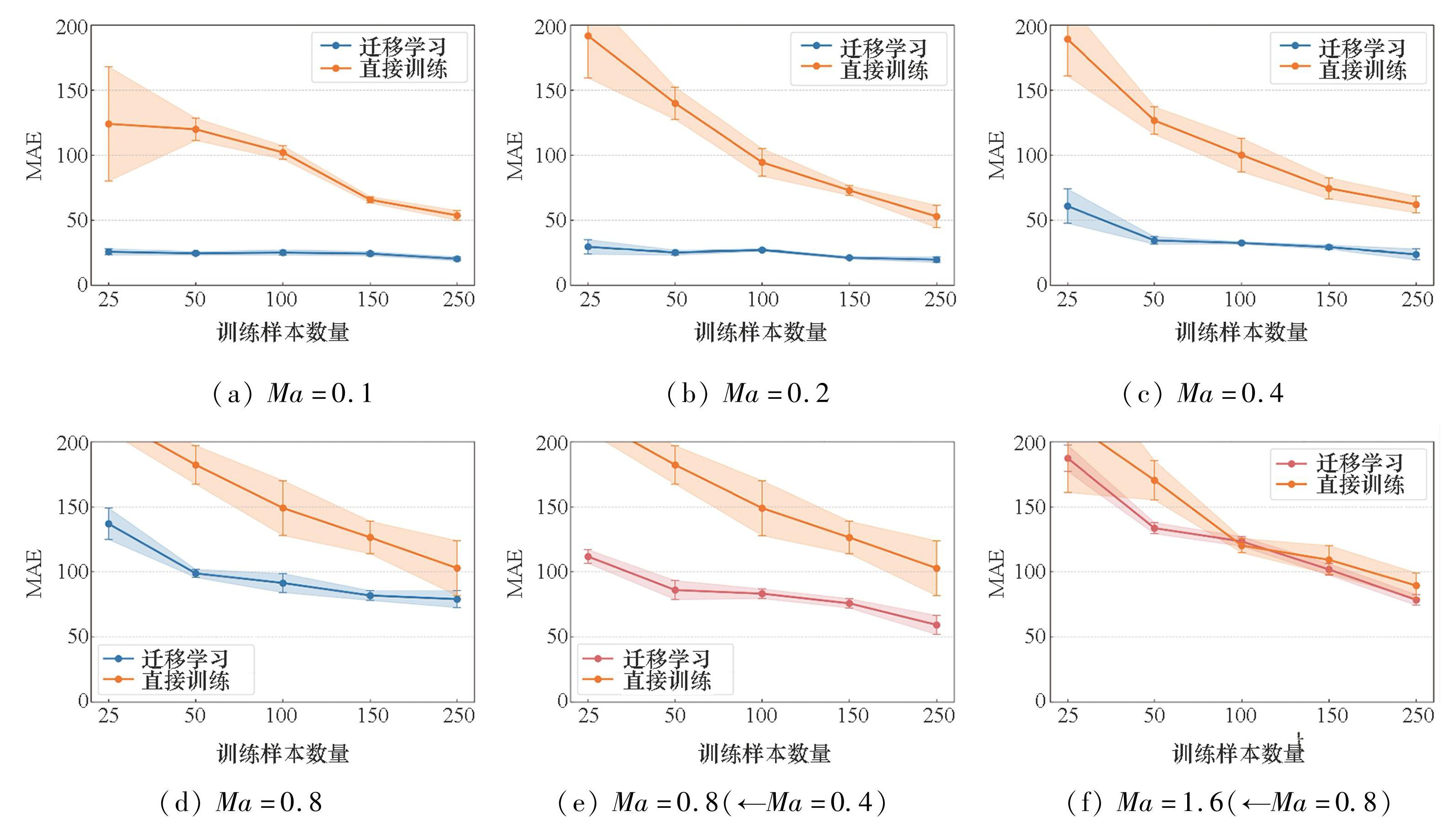 摘要:针对不同马赫数下平板边界层转捩位置的预测问题,开展小样本条件下的高效预测方法研究。利用非线性抛物化稳定性方程生成大量流动转捩数据,以Ma=0.01的样本作为源域,Ma=0.1,0.2,0.4,0.8,1.6的样本作为目标域,系统分析不同马赫数对转捩图案的影响。基于卷积神经网络,构建流场图案与转捩位置的映射关系,并采用渐进式解冻结合分层学习率的迁移学习策略。结果表明,迁移学习显著优于直接训练:在Ma≤0.4时,仅需目标域1/10的样本即可实现平均绝对误差低于真实值均值的2.04%;在Ma≥0.8条件下,通过渐进式领域适应策略可将误差控制在6.19%以内。该方法有效提升了小样本条件下的转捩预测能力,为跨工况流动转捩预测提供了技术路径。