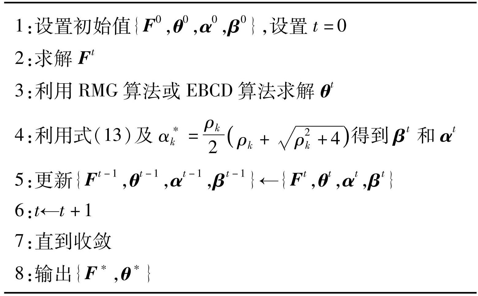 当固定任意两个优化变量时,f2β为关于剩余变量的凸函数。这是因为f2β是线性函数和二次函数的差,即该问题关于任一变量均是凸的[19]。因此,对于f2β,可交替地求解相应的子问题来更新变量。