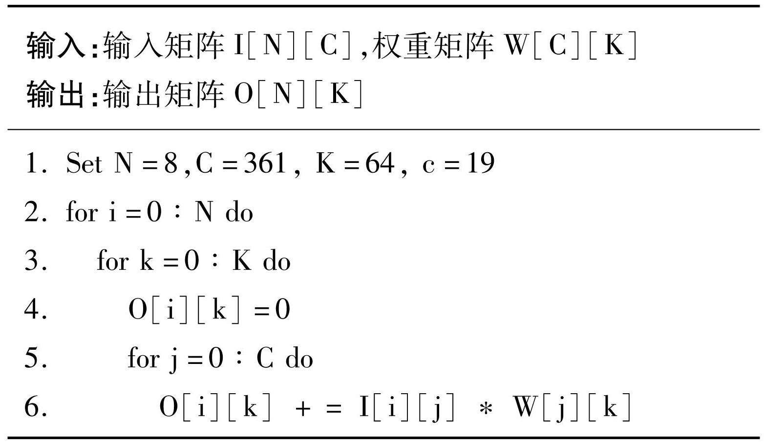 算法1 原始全连接算子前向计算伪代码