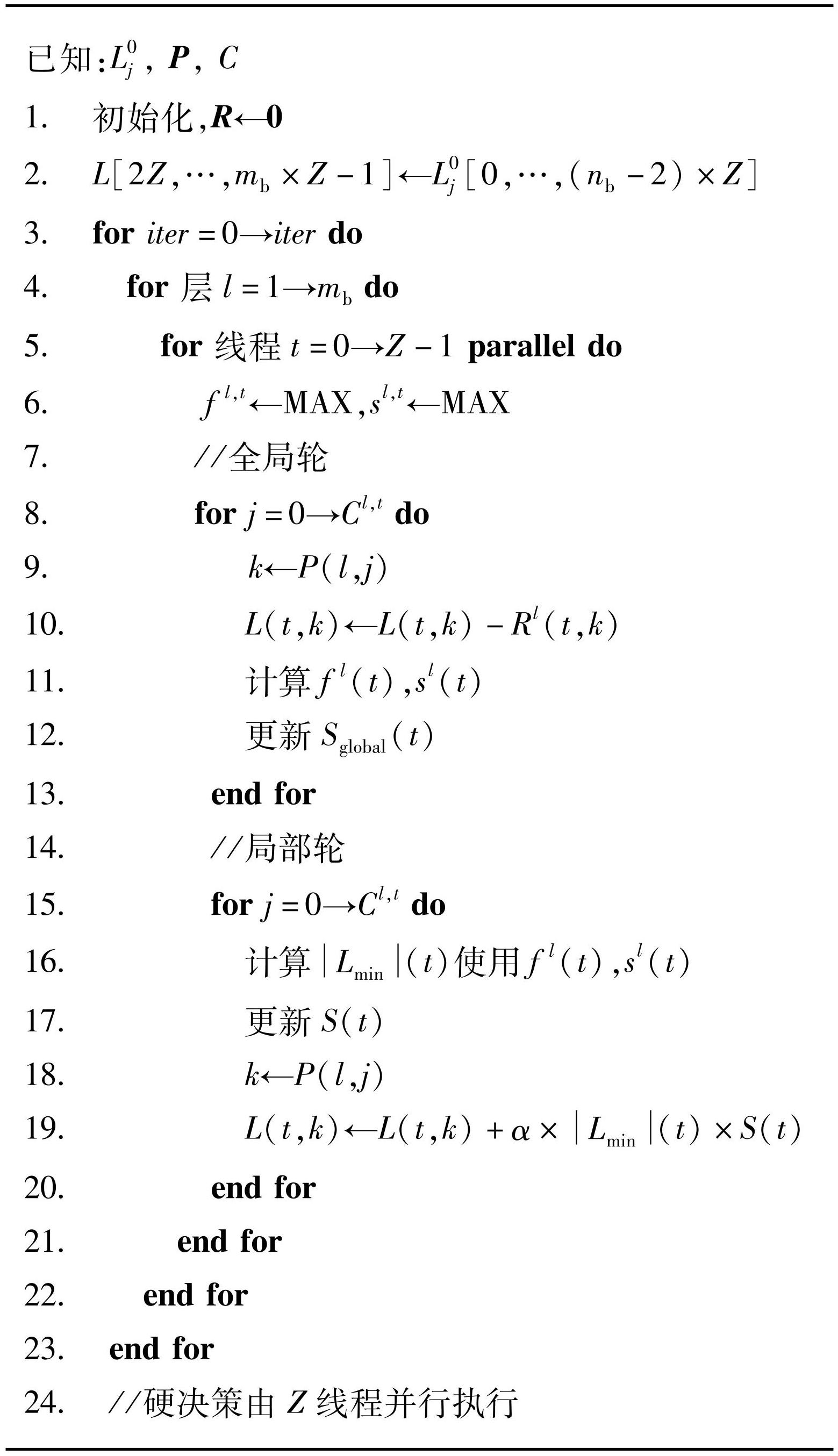 算法1 并行层译码算法