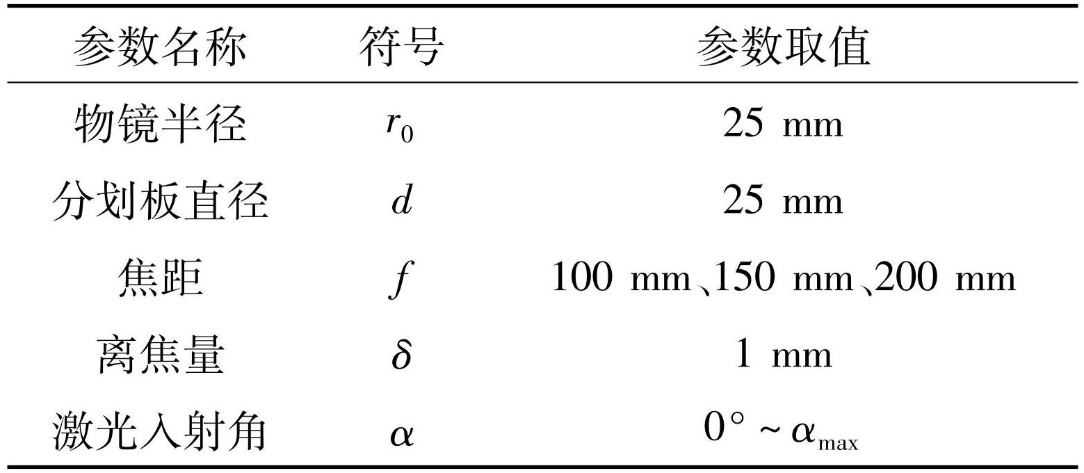 基于本研究建立的模型计算的最大入射角与Zemax数值模拟结果的对比见表3,可以看到模型对于激光入射角有效范围的预测与Zemax结果基本一致,误差几乎可以忽略。