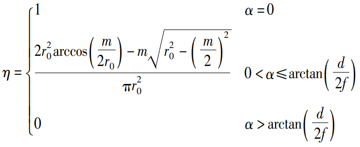 光阑遮挡条件下猫眼目标回波效率定义如下: