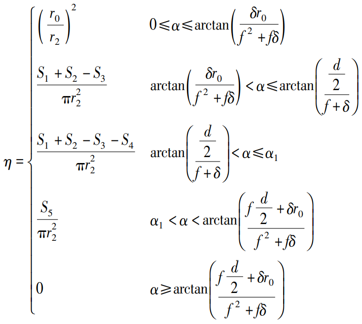 根据上述分析,经过公式推导可知,在猫眼目标光学系统无离焦的情况下,回波效率表达式如式(2)所示。