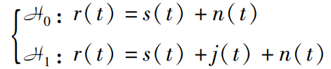 其中,s(t)、j(t)、n(t)分别表示目标回波信号、有源干扰信号及噪声项。